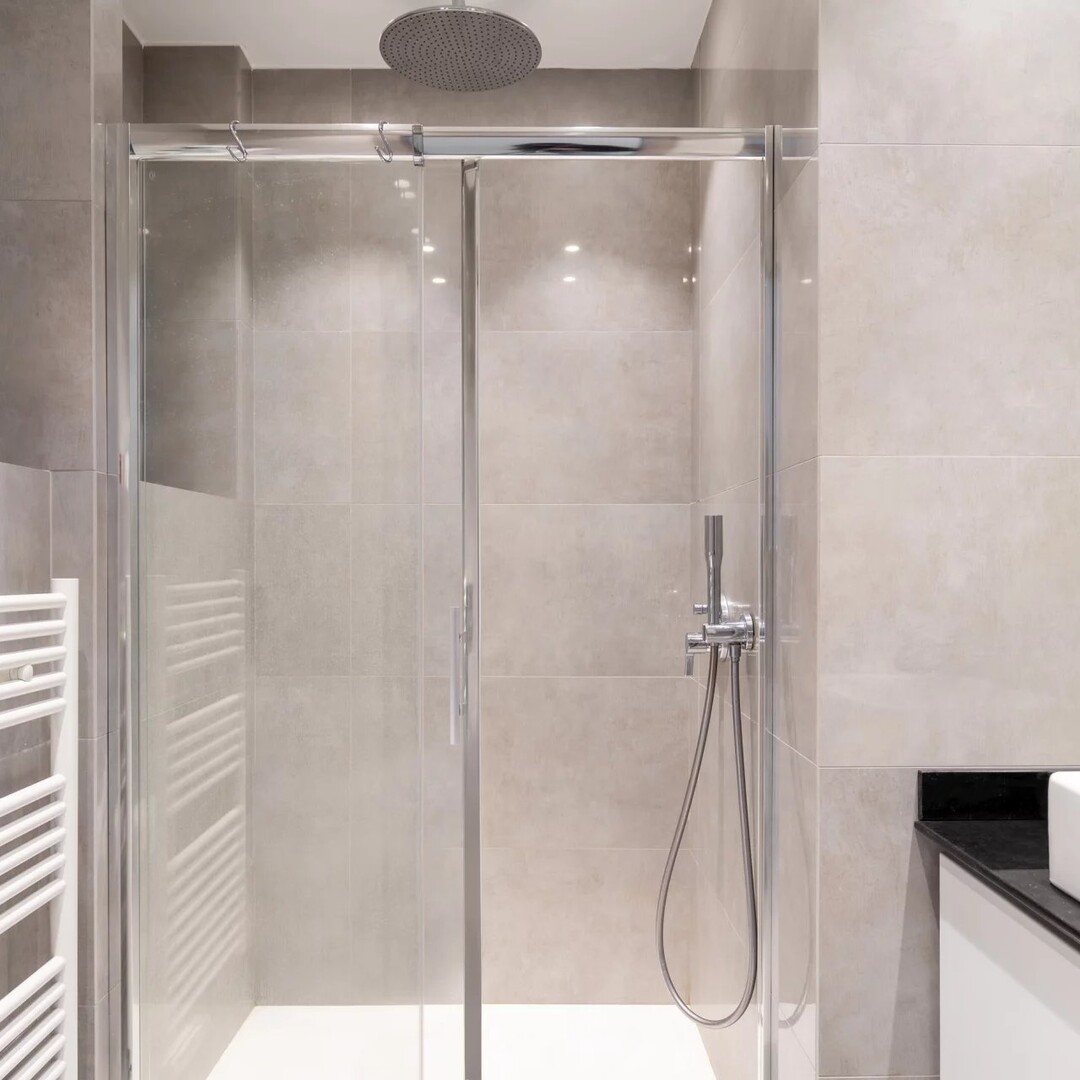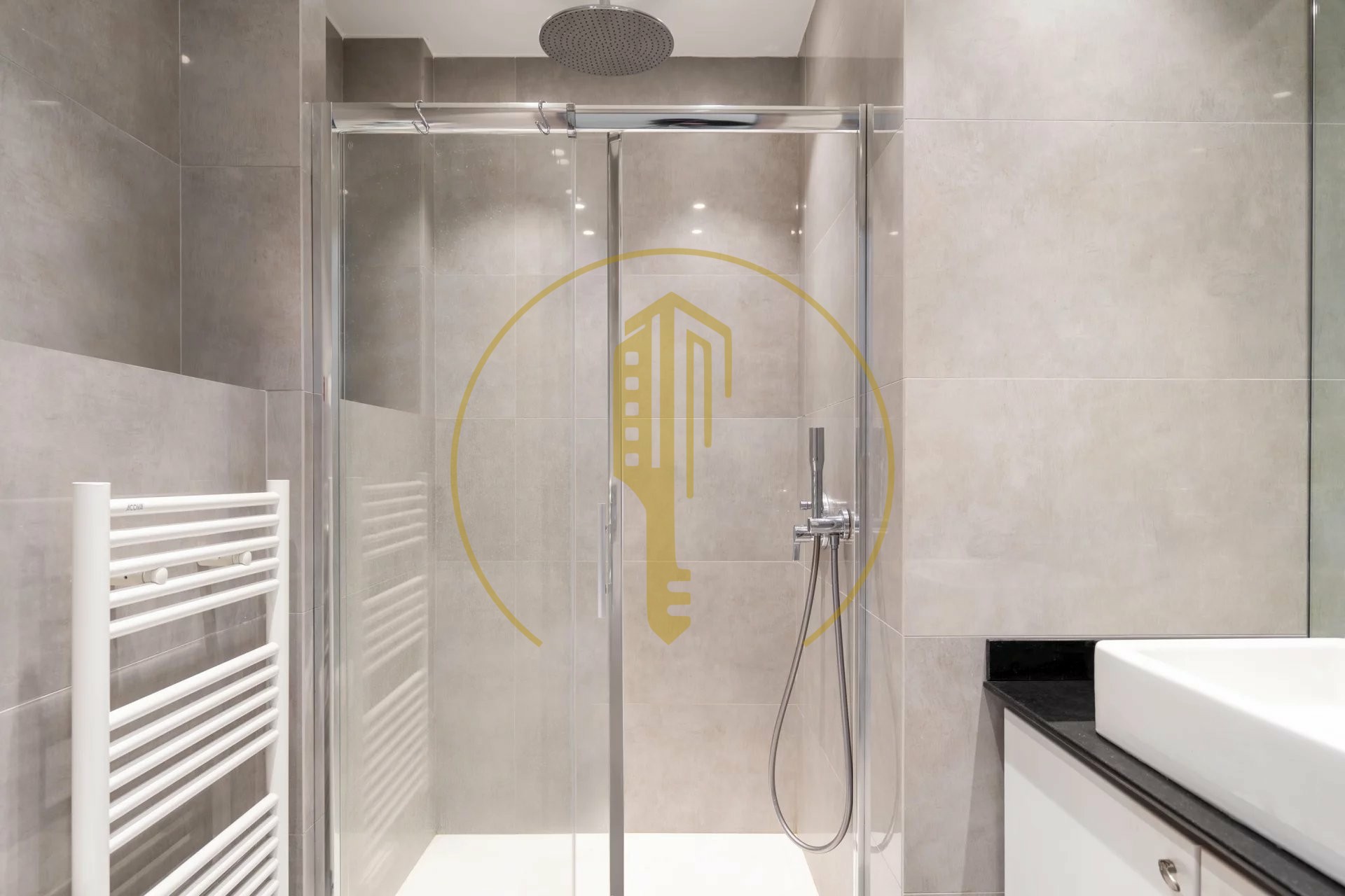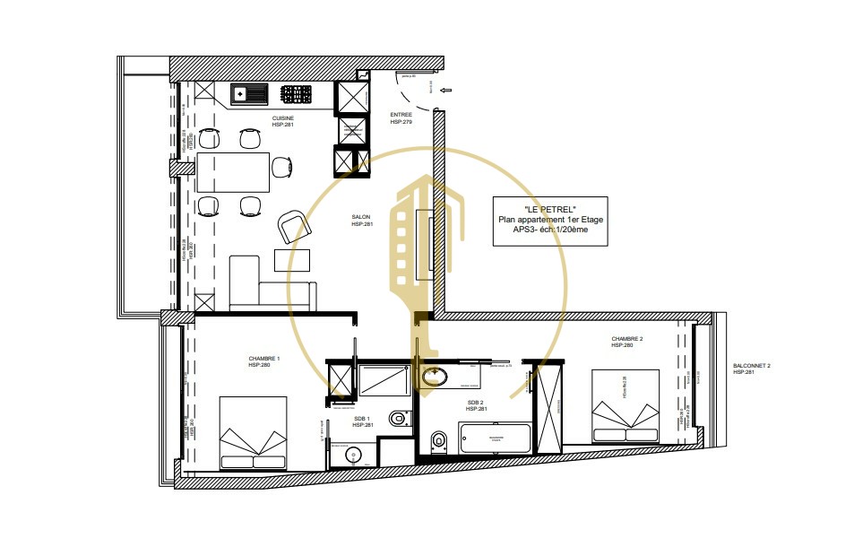 It is composed of : an entrance hall, a living room with an open kitchen and a terrace, two bedrooms and two bathrooms.