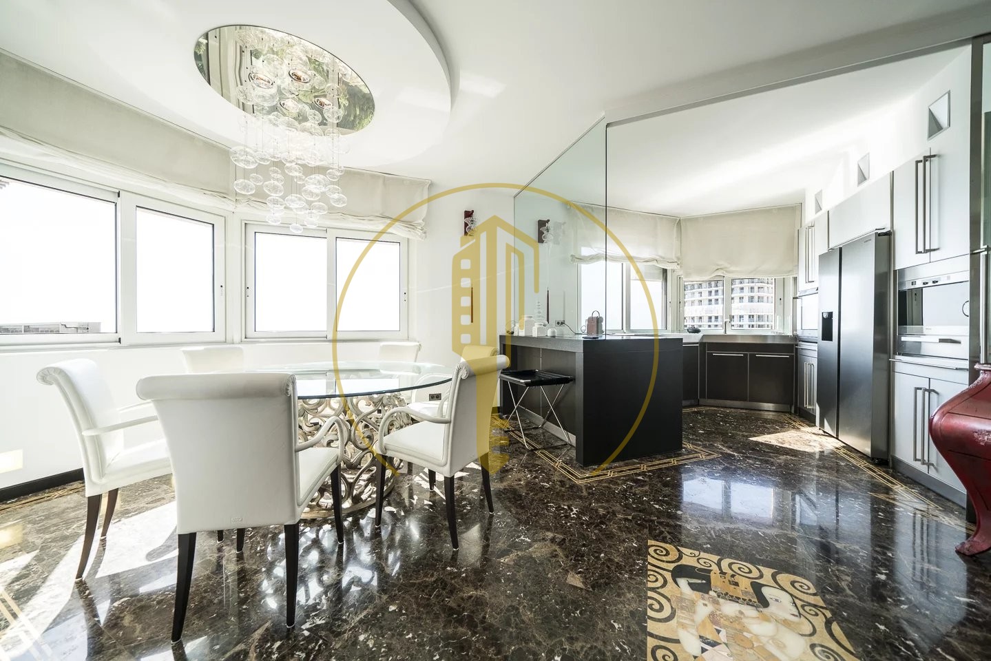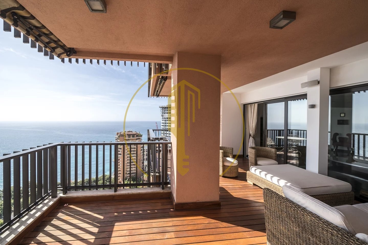 La Rousse, Saint Roman, in a residence of high standing with concierge H24 and swimming pool, very beautiful 5 room-flat with a living area of about 228 sqm and  48 sqm of terraces. Located on the 15th floor and exposed east, it enjoys panoramic sea views overlooking the Country Club and Monte Carlo Beach. It has been renovated with beautiful materials and decorated in a design way. Close to all amenities.