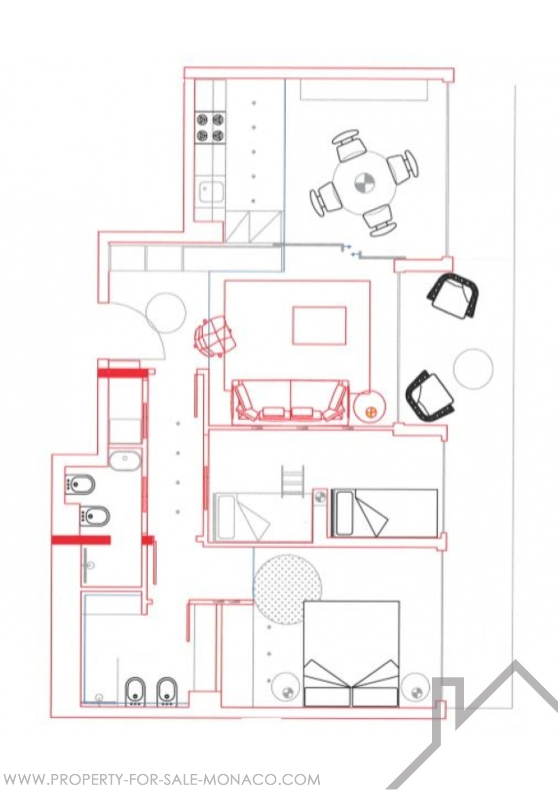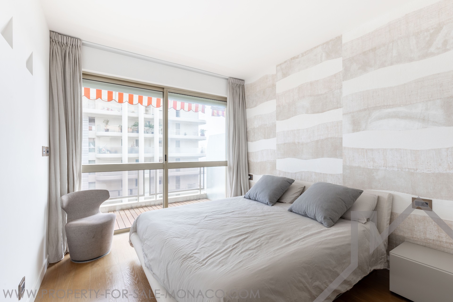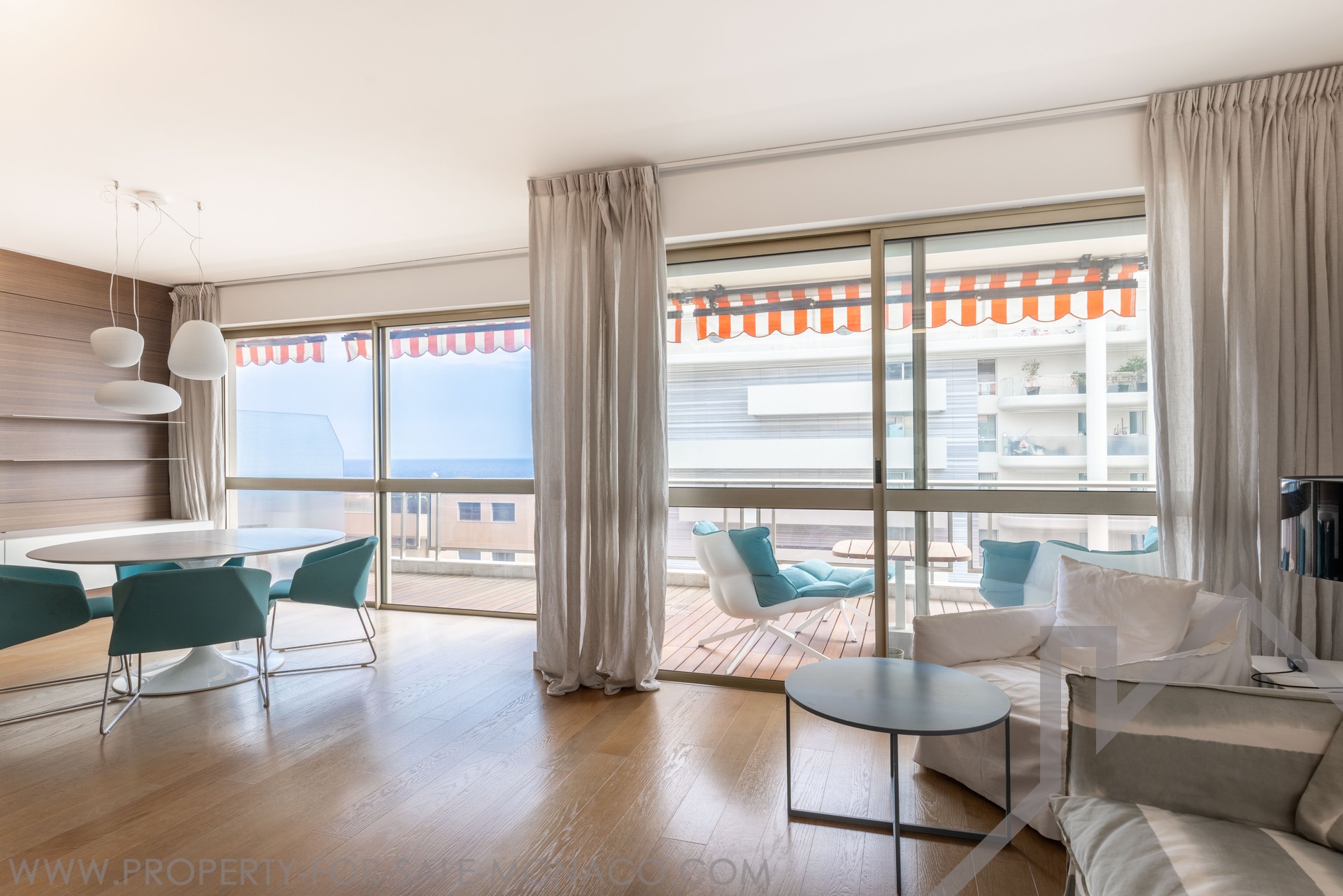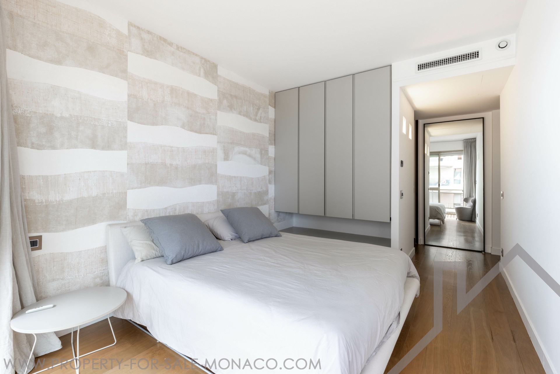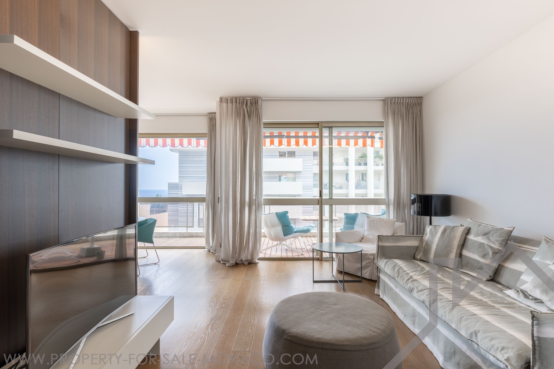 Beautifully renovated 2-bedroom apartment with high-end finishes, located on the 8th floor of a modern building with concierge on Boulevard du Larvotto. Just steps from the beach and shops via the building’s rear access.