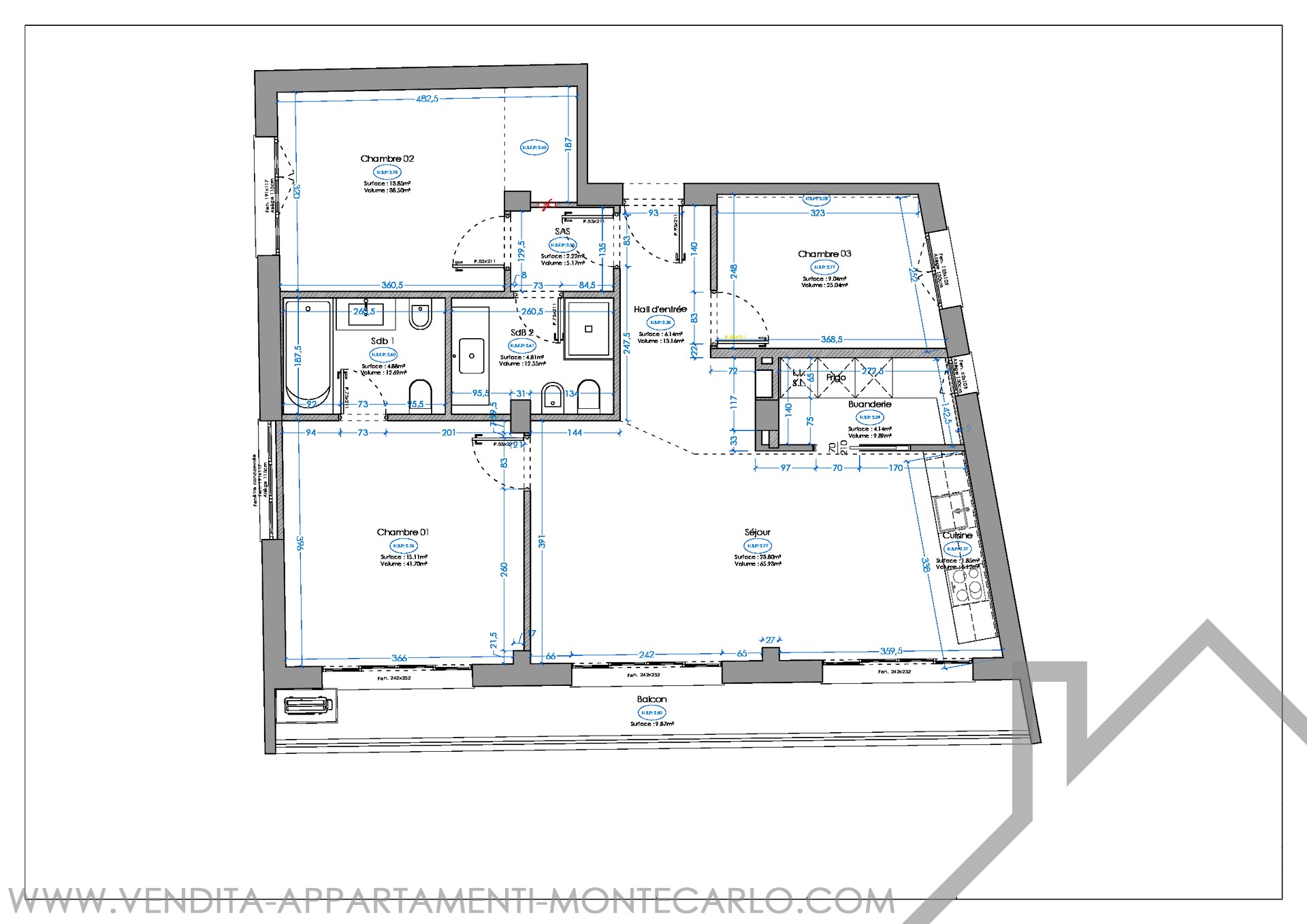 This 4-room apartment is composed of a beautiful entrance leading to the living / dining room, a fully equipped open kitchen and a laundry room, a master bedroom with its bathroom, a bedroom en suite with shower room and a third bedroom.