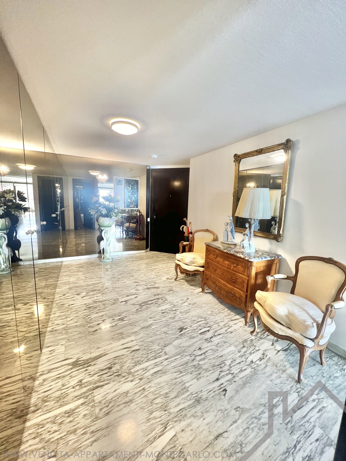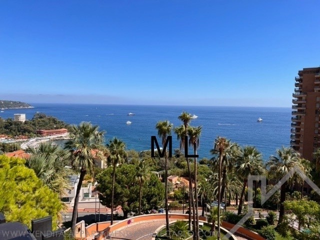 Large exceptional 4-room apartment, highly sought-after product, panoramic sea view, located near the Country Club, the Monte-Carlo Beach Club and the International School, in one of the most beautiful buildings in the Principality, benefiting from a magnificent park with a fitness area, swimming pool, sauna, 24-hour concierge service, snack bar open all year round, dog garden. Close to all shops and public transport. Direct access to the Larvotto beaches by lift. It consists of an entrance hall, large living room opening onto a terrace with sea view, independent kitchen, 3 bedrooms, plenty of storage, 2 bathrooms, guest toilet. A parking lot and a large cellar Price on request