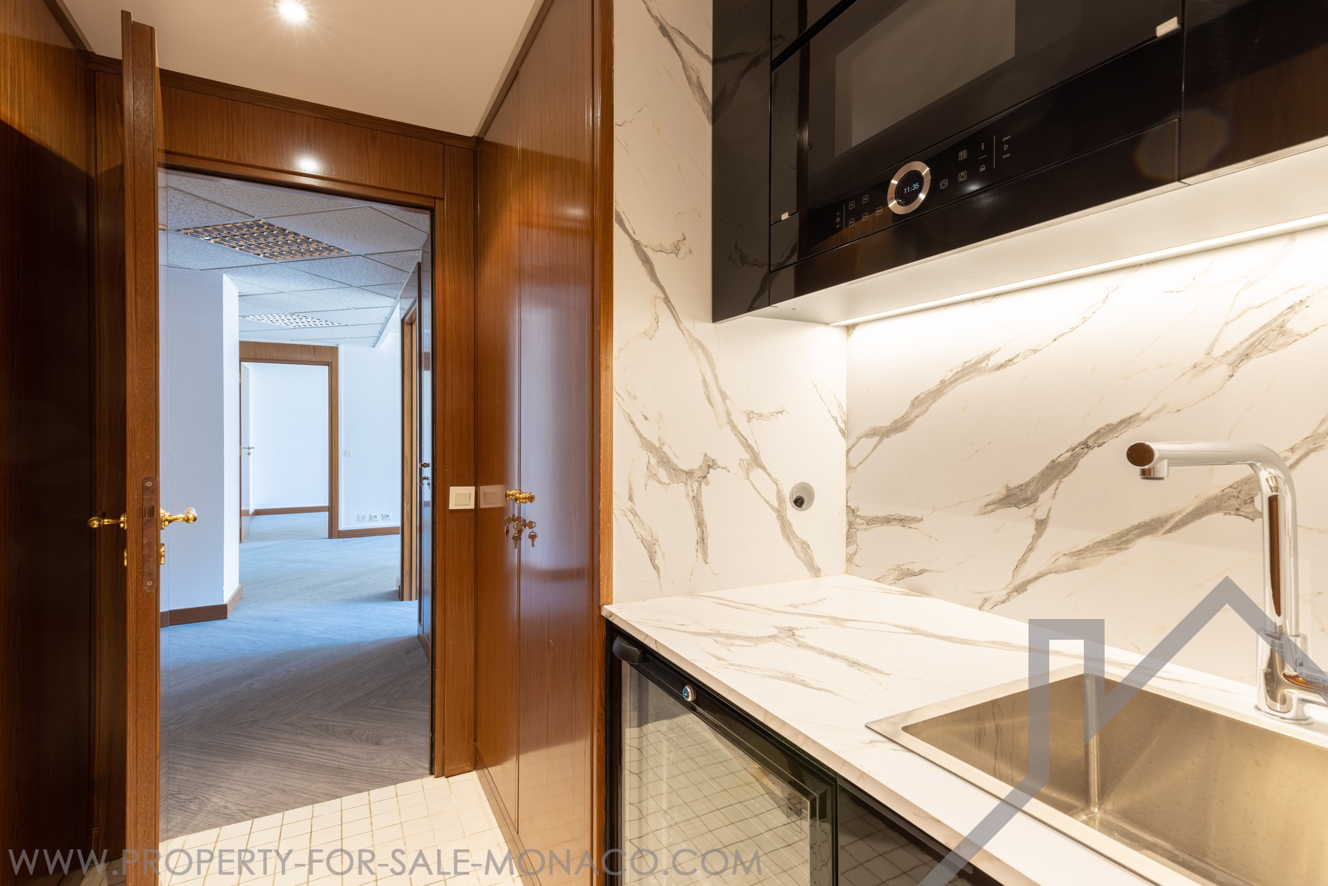 In a luxurious building in the Carré d'Or, magnificent offices on the first floor overlooking the Casino gardens.
