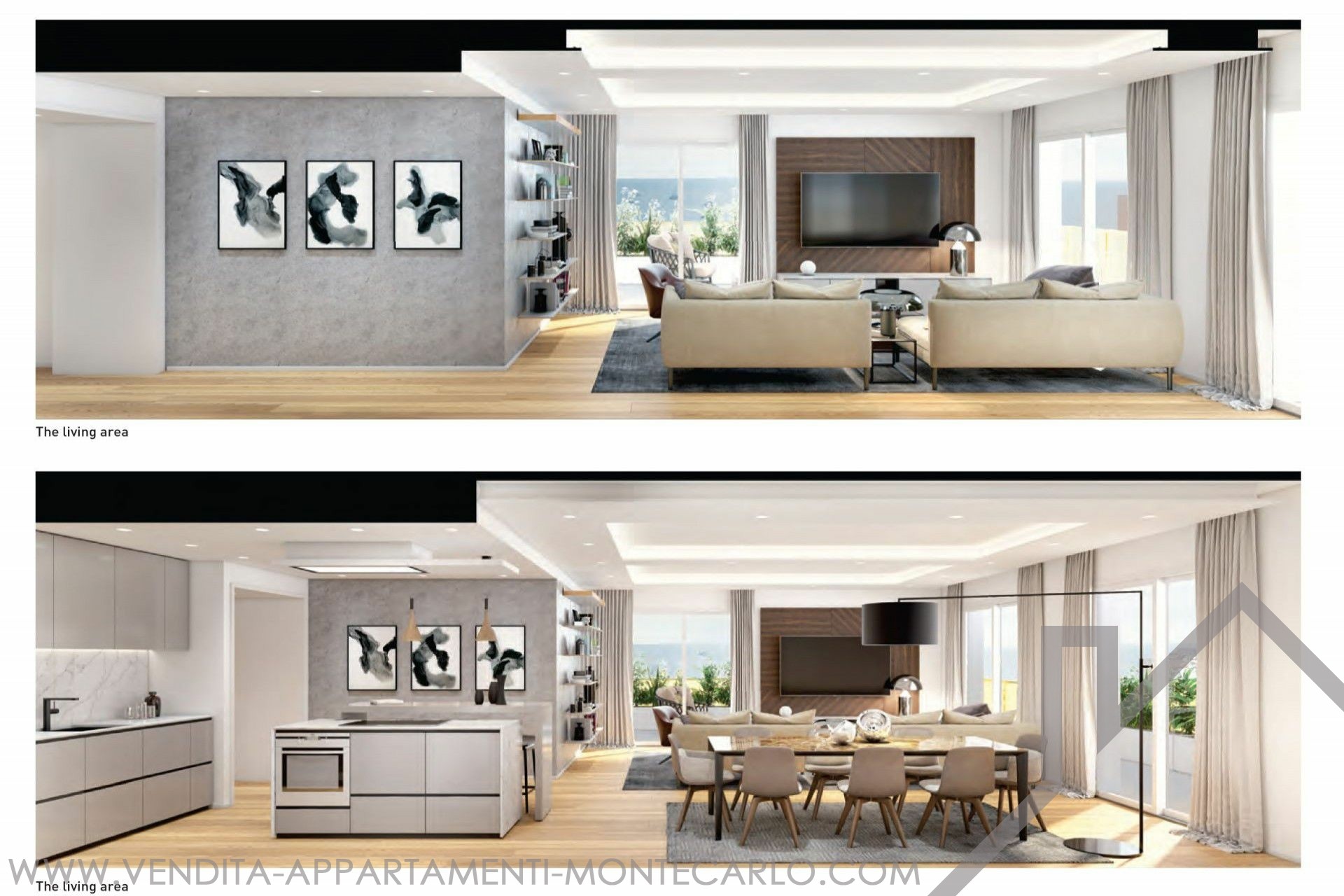 EXCEPTIONAL Penthouse apartment with a splendid panoramic sea view, refurbished, tastefully furnished and decorated in a contemporary style. 1st level with entrance, guest toilet, a large bedroom with en-suite shower room, dressing room and private terrace. Large living room and dining room with open kitchen, bordered by a beautiful terrace. A glass and wood staircase leading to the 2nd level, towards the master bedroom via a hallway leading to the shower room and the dressing room. A separate toilet. The whole floor is surrounded by a beautiful terrace decorated with greenery and furnished. The 3rd level 'terrace', is pleasantly landscaped with greenery around its perimeter and embellished with a large table and chairs, outdoor sofas and sun loungers. Total area 368 m² including 138 m² of living space and 230 m² of terraces. 1 double parking lots.