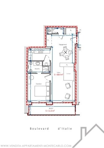 This 2-room apartment is located on the upper floor of a residence with concierge service in the heart of the Place des Moulins, in the immediate vicinity of all amenities and only a few minutes from the beaches by public elevator.