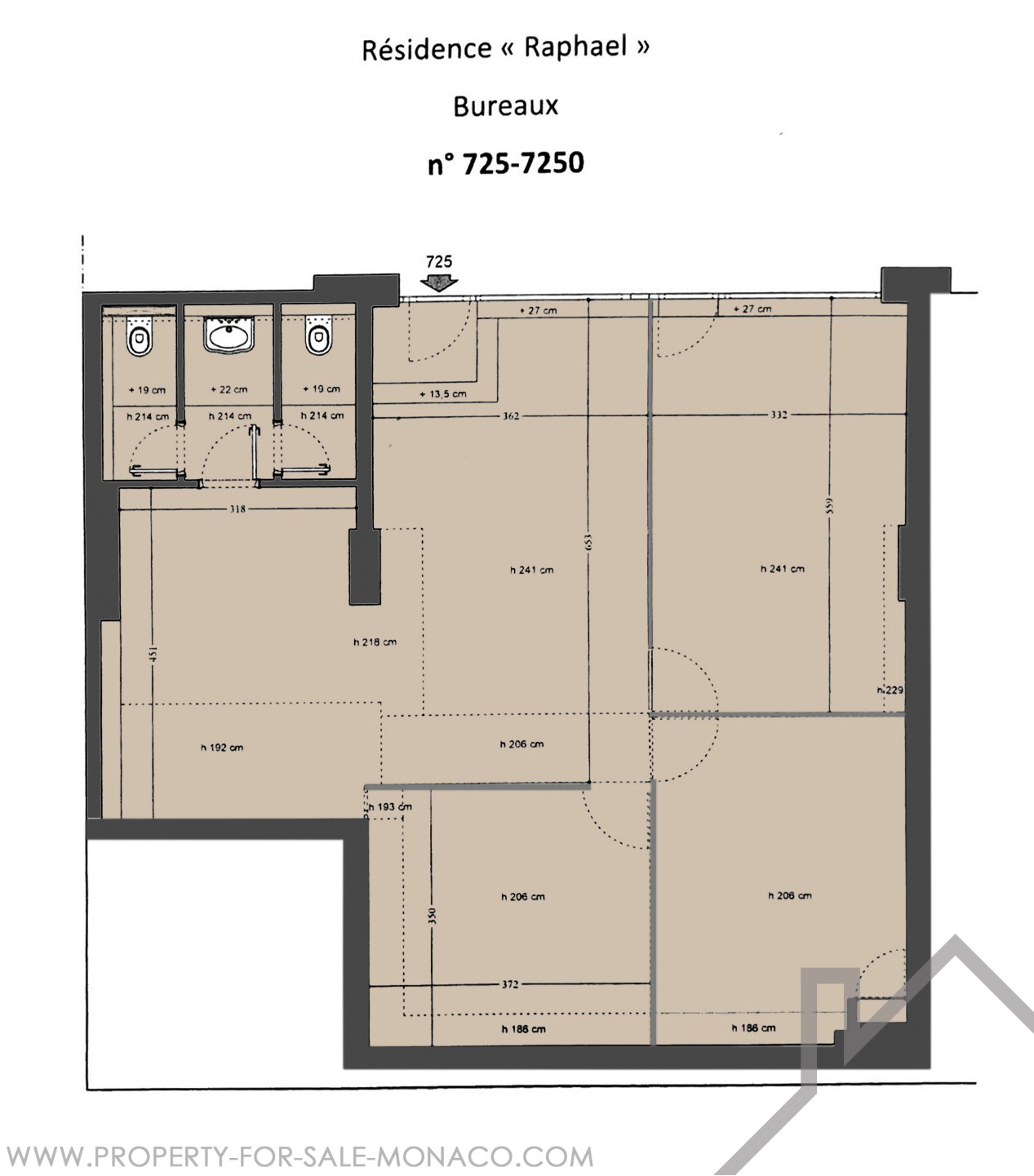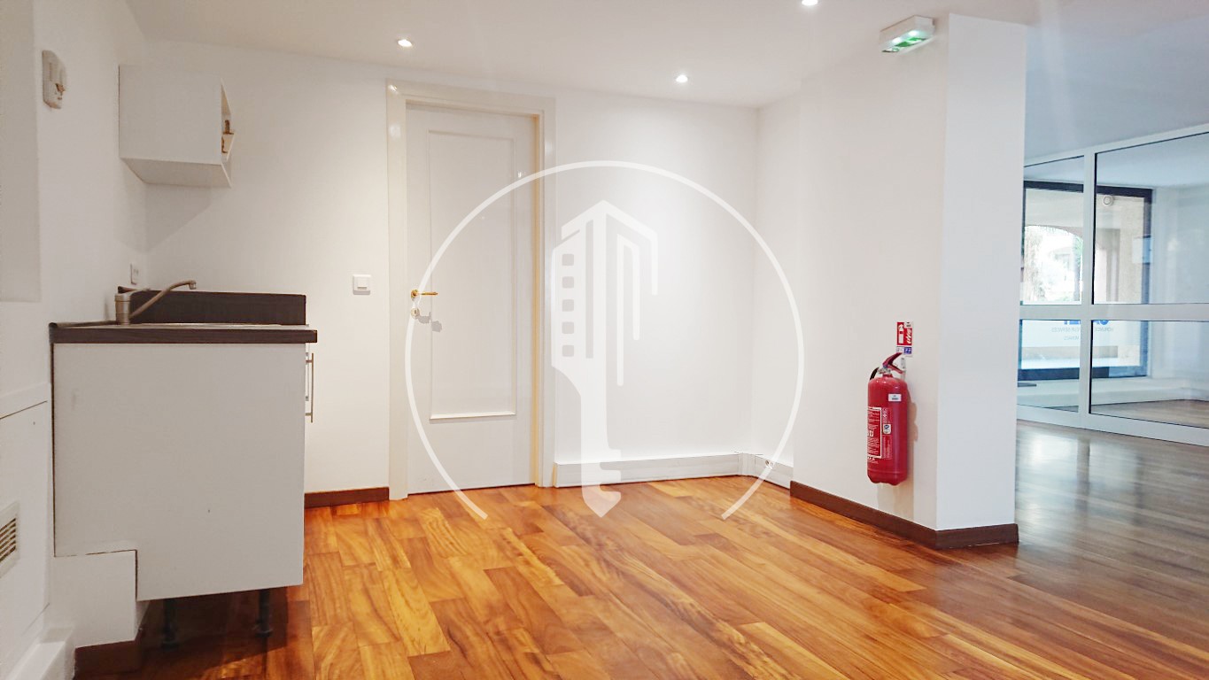 Currently partitioned with glass walls to preserve the light in the various workspaces, the office also includes a hallway, a sanitary area and two toilets.