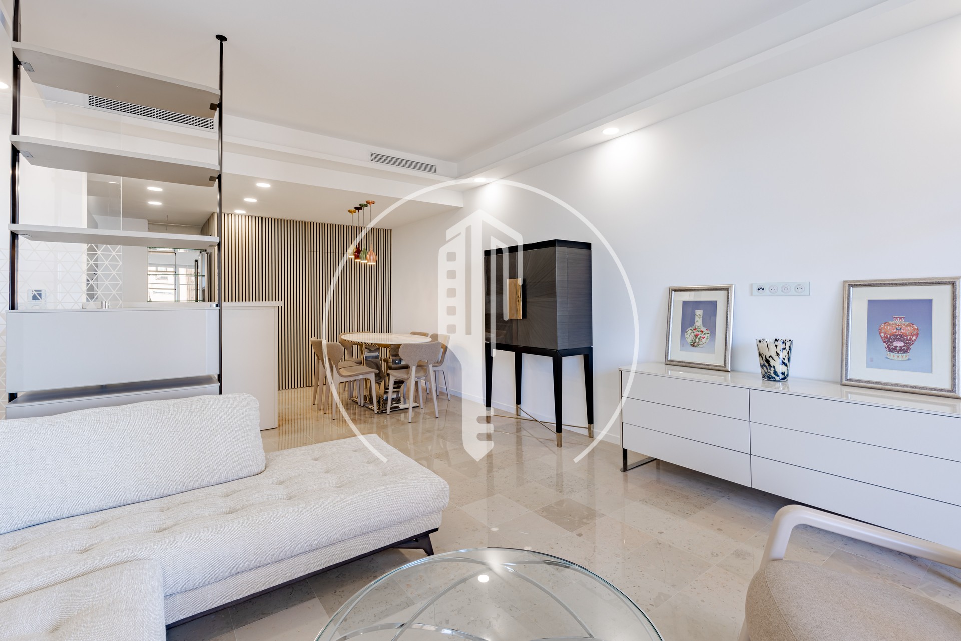 As a bonus, the apartment comes with a parking box at the Trocadero and two cellars in the building.
