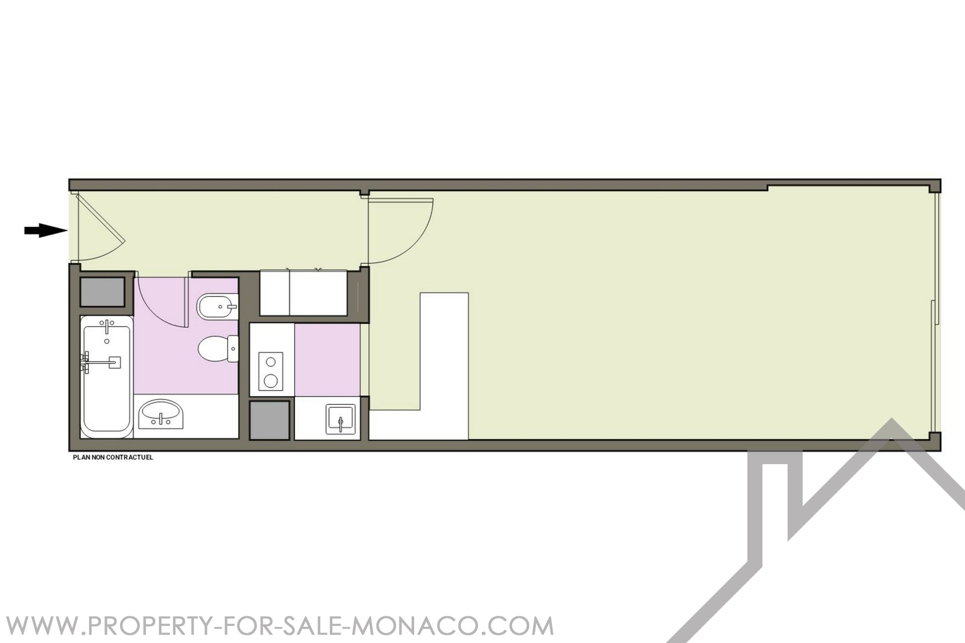 The studio is large, functional and well laid-out. It comprises of an entrance, a bathroom and a large living space with an open-plan kitchen.
