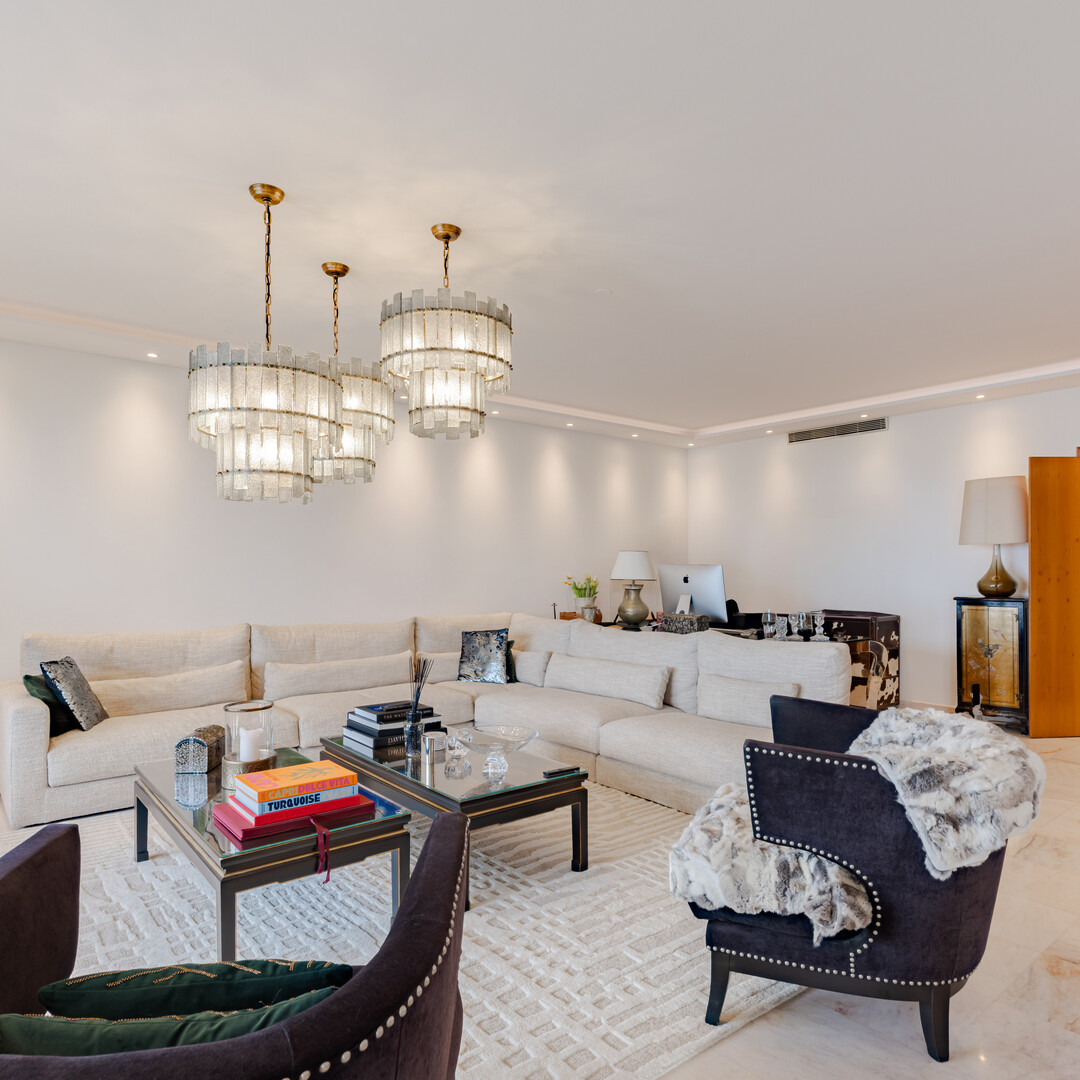 This Penthouse offers a breathtaking panoramic sea view. It consists of an entrance, a double living room with dining room, two bedrooms with en-suite bathrooms, as well as a fully equipped independent kitchen. On the top floor, a private rooftop pool and lounge area invite you to relax.