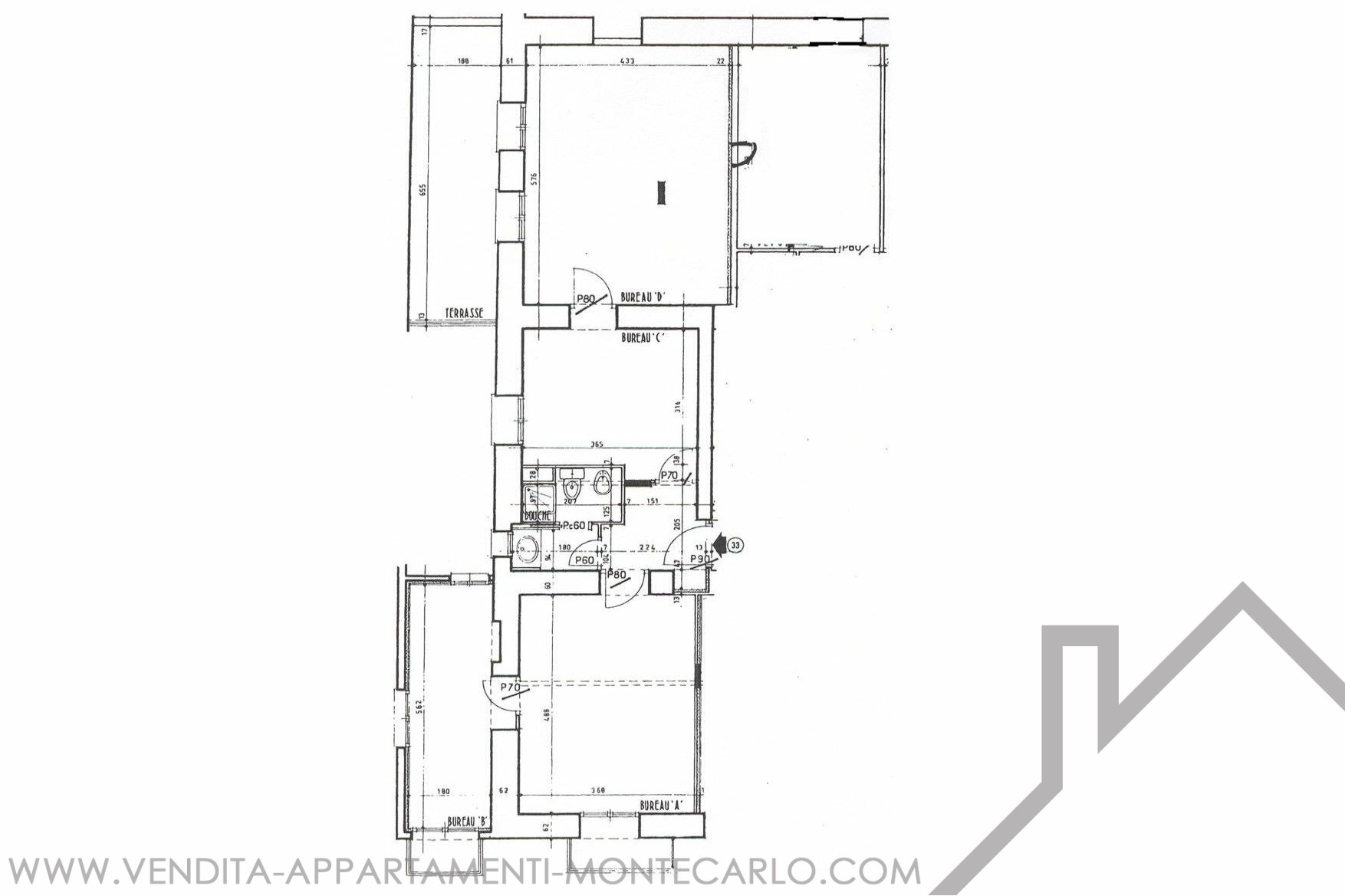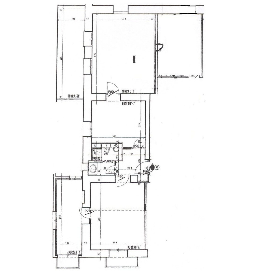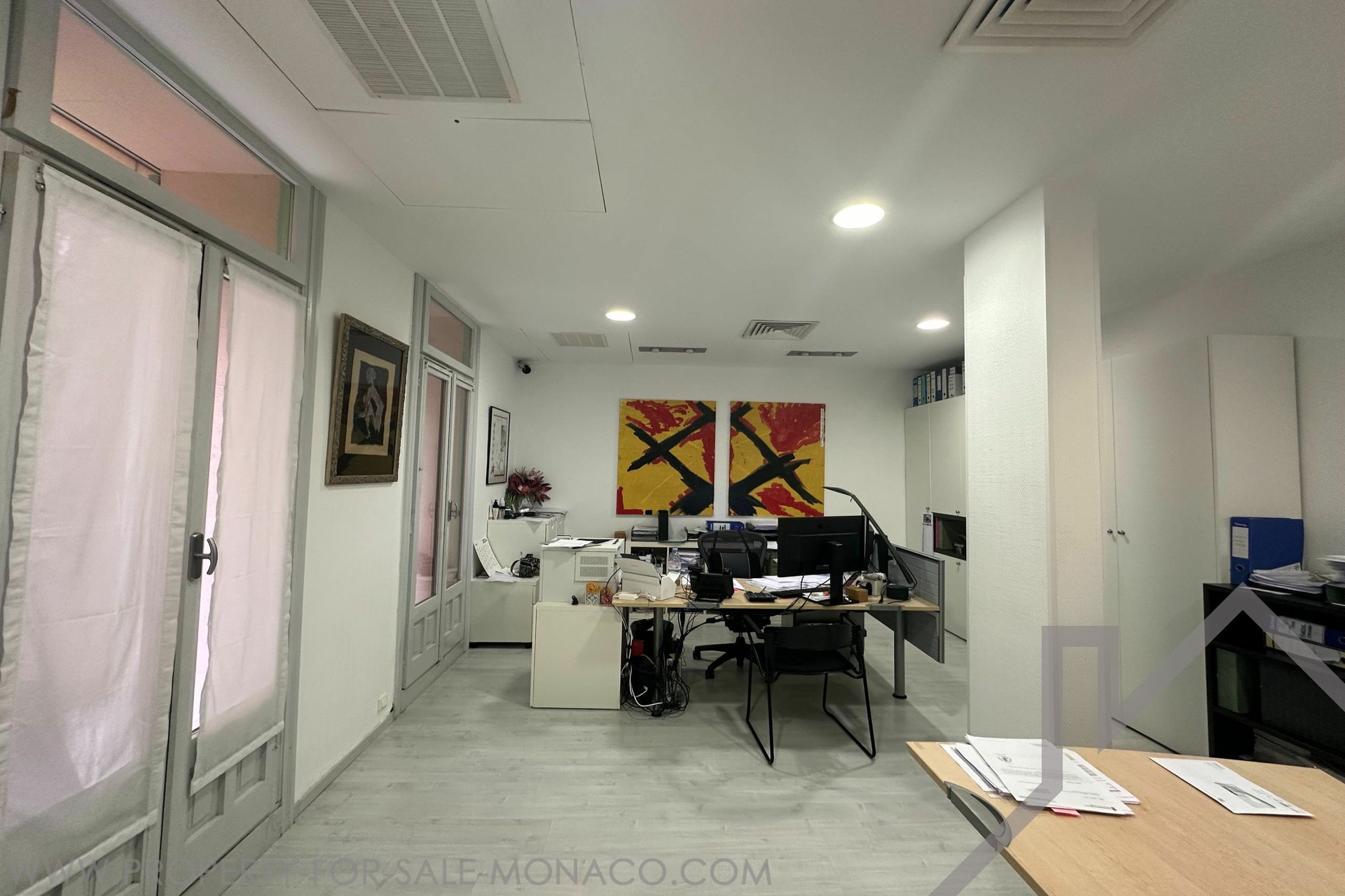 LARGE 4-room OFFICE in a bourgeois building, close to all amenities, located on Boulevard des Moulins. It has a total surface area of 123 m² including 116 m² of living space and a 7 m² terrace. Description: 4 rooms, 1 secure room with armored door, a bathroom with shower, WC and sink. Possibility of transforming into residential use Free quickly.