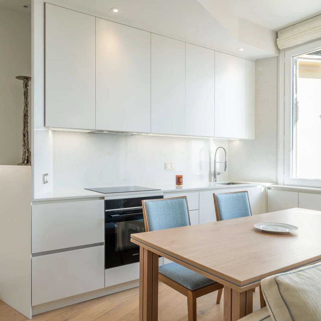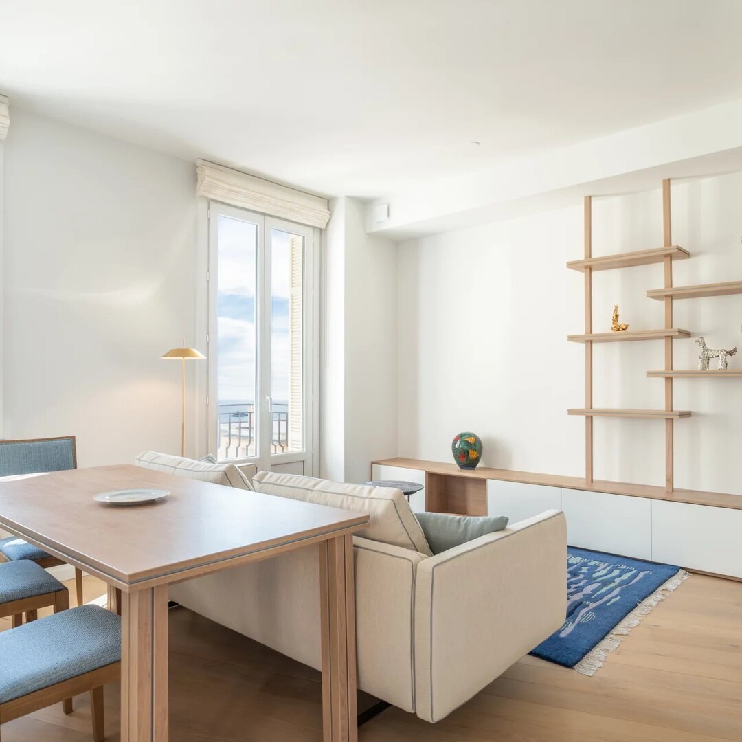 This renovated and furnished 2-room apartment, located on the 4th floor, with 55.8 sqm of living space and 3.4 sqm of balconies, enjoys a sea view and optimal exposure.