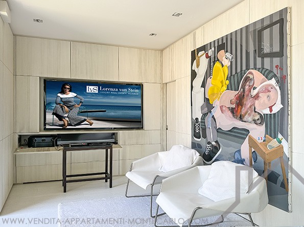 On the ground floor of the semi-detached villa, there is an extraordinary private large parking lot, with space for 2 cars, which is rare on the Rocher.