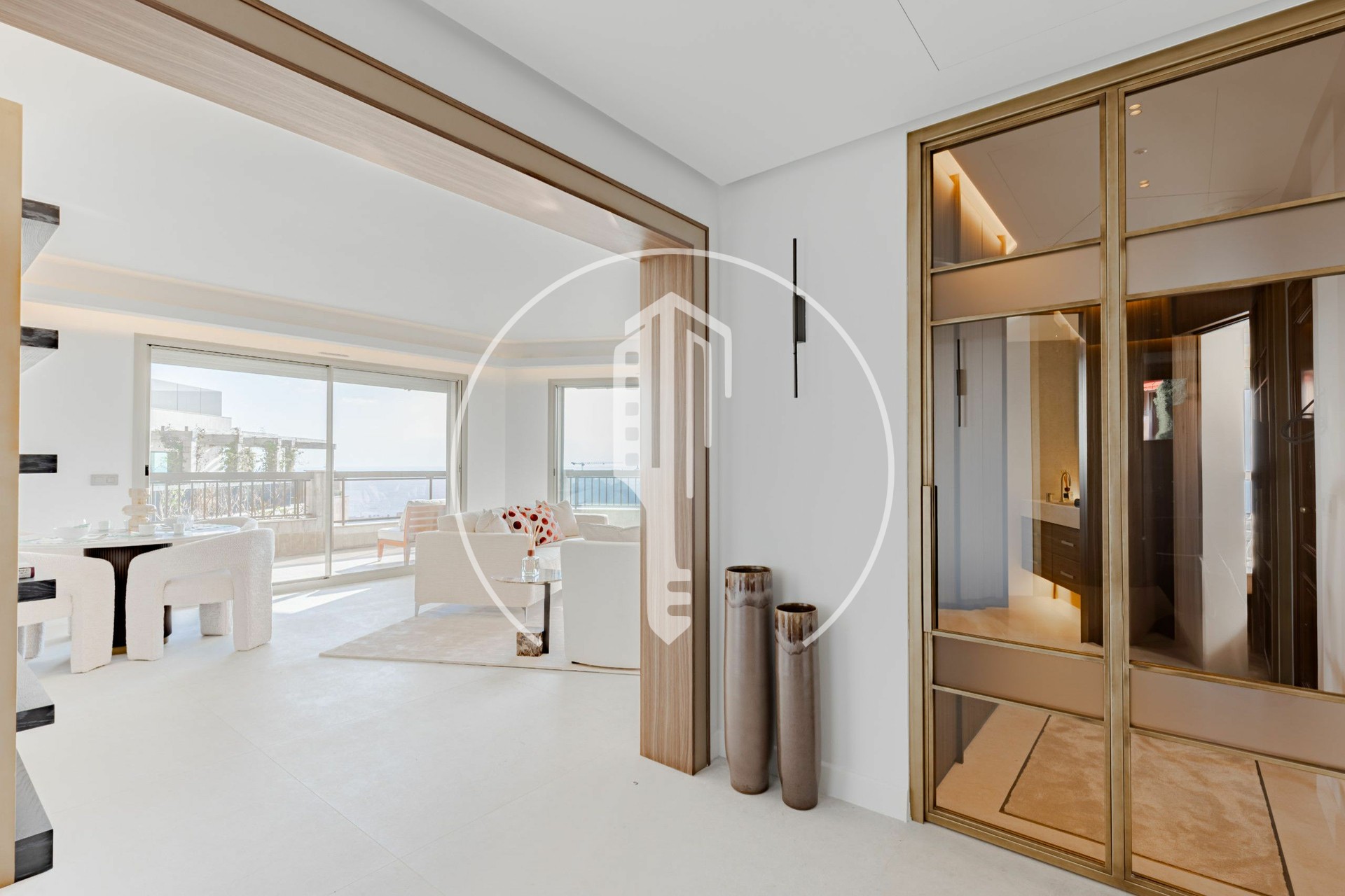 This beautiful 2 bedroom apartment located on Boulevard de Belgique in the Beverly Palace residence has been completely renovated with high-end materials. This apartment includes two bedrooms with its own bathroom, a living room with dining room, a fully equipped independent kitchen and a guest toilet. A large terrace offering a magnificent view of the Port Hercule and the Rocher illuminates the apartment. 1 parking and one cellar