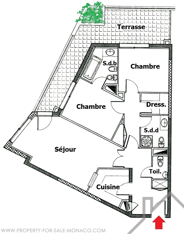 Jardin Exotique, beautiful TWO BEDROOM apartment, high floor, nice view, private pool.