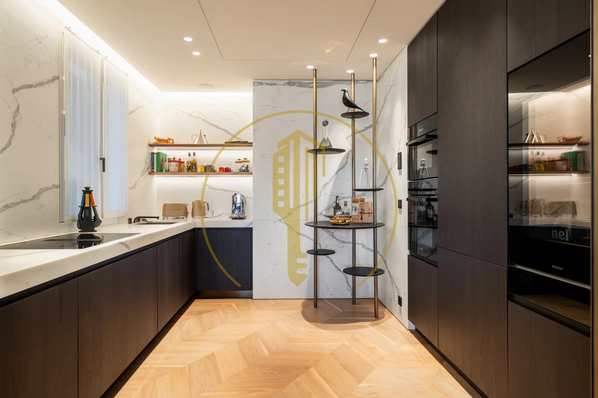 Unique and rare 4-room apartment with 185 sqm of living space and 15 sqm of balconies. It has been renovated with luxury finishes and enjoys high ceilings.