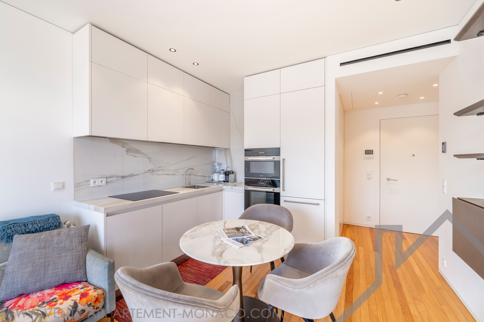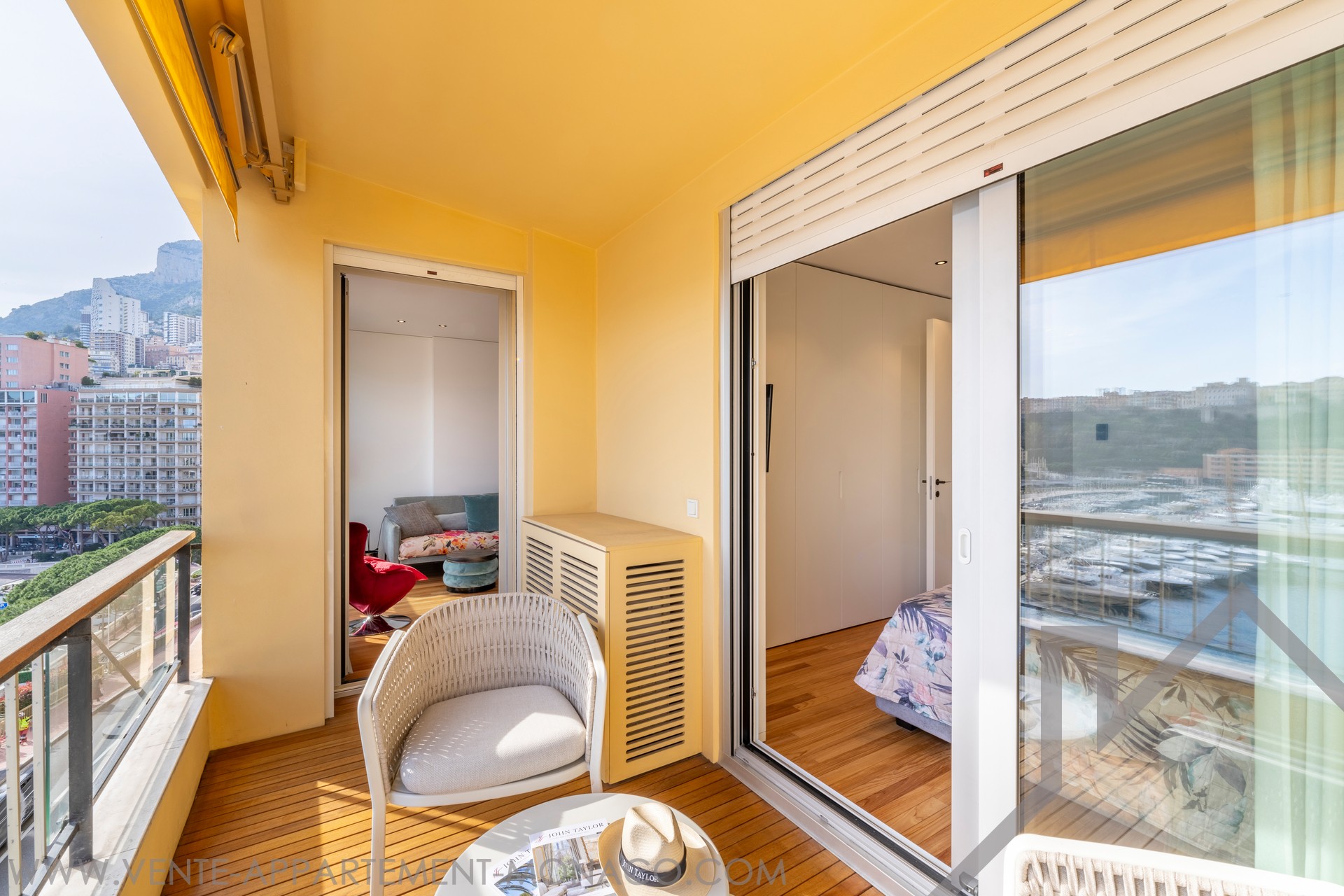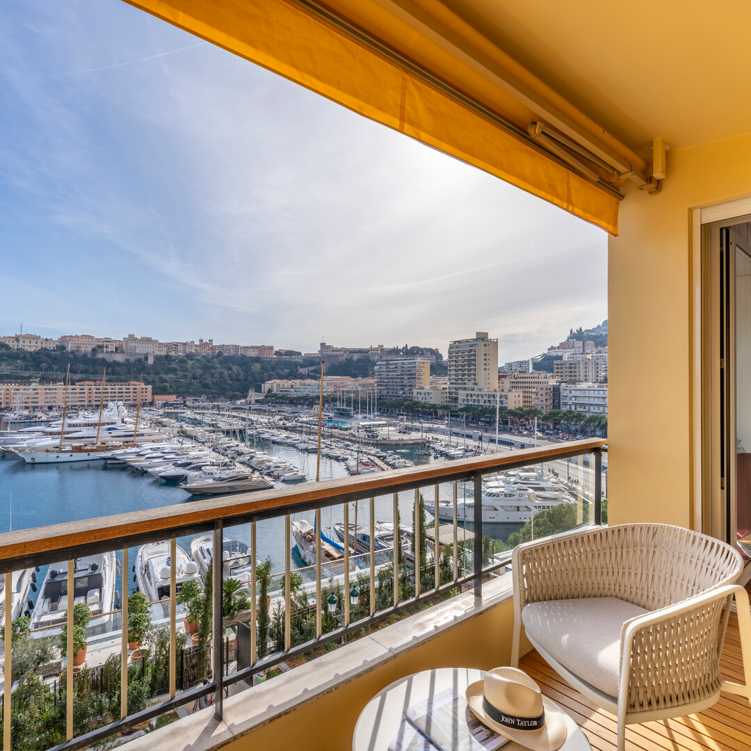 This superb 2-room apartment has been completely renovated and furnished with quality materials, also benefiting from an integrated home automation system. It consists of an entrance hall with cupboards, a living room with a fitted kitchen opening onto a beautiful loggia offering a panoramic view of Port Hercule, the Formula 1 circuit and the Rock. The sleeping area includes a full shower room, plenty of storage space and a bedroom opening onto the loggia.