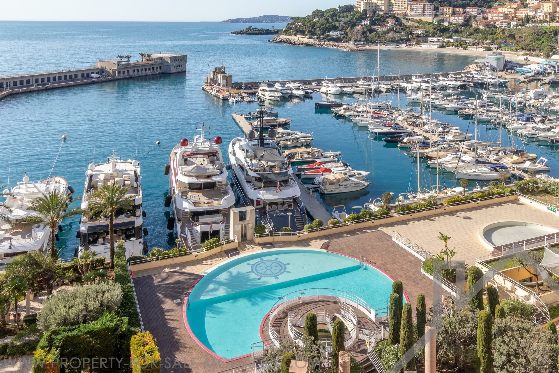 This unique opportunity allows for the merging of these 2 exceptional properties to create a spacious living space accessible by a private elevator, featuring breathtaking views of the Mediterranean Sea, from Italy to Cap Ferrat and the port of Cap d'Ail. Bathed in light thanks to its triple exposure (east, south and west).