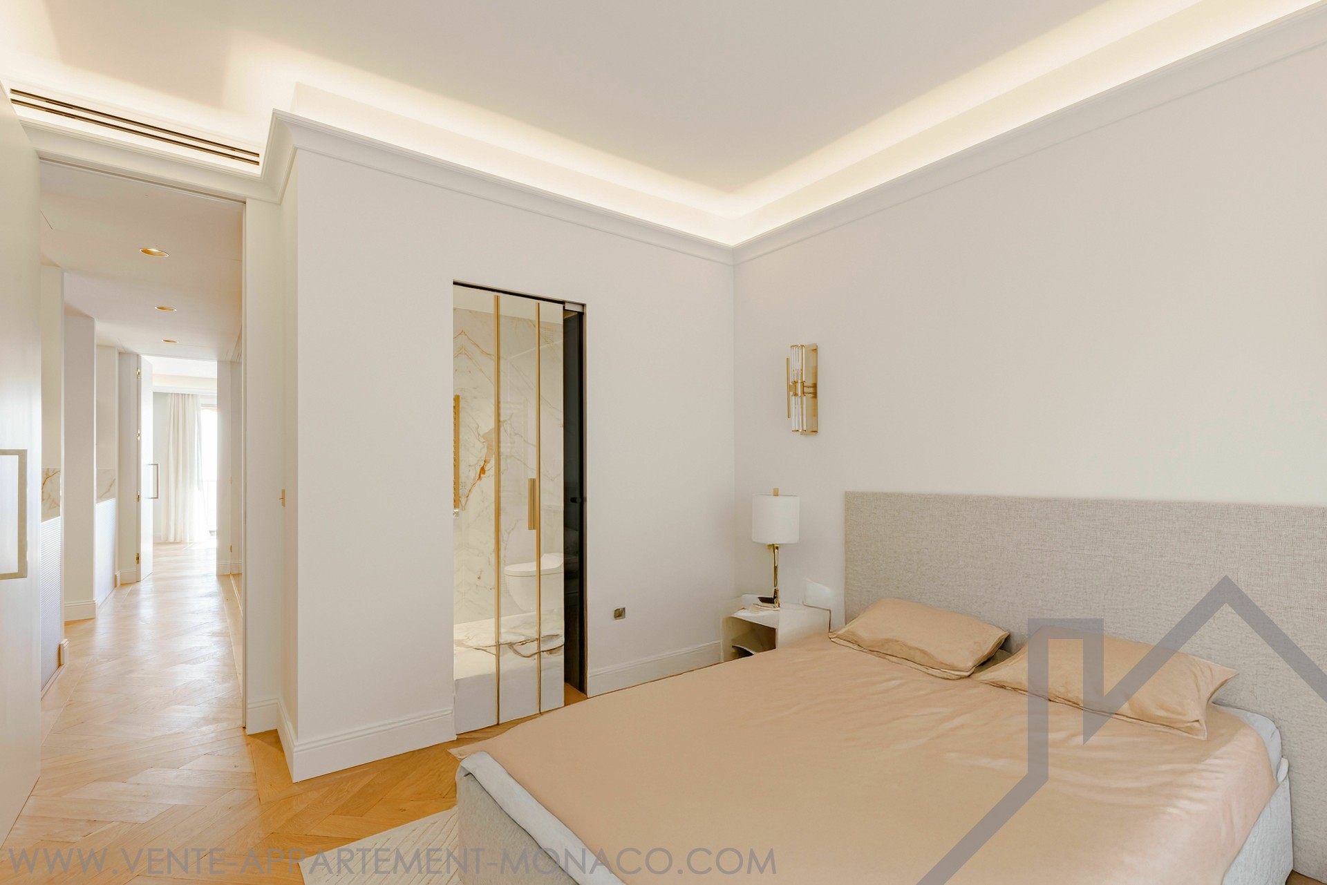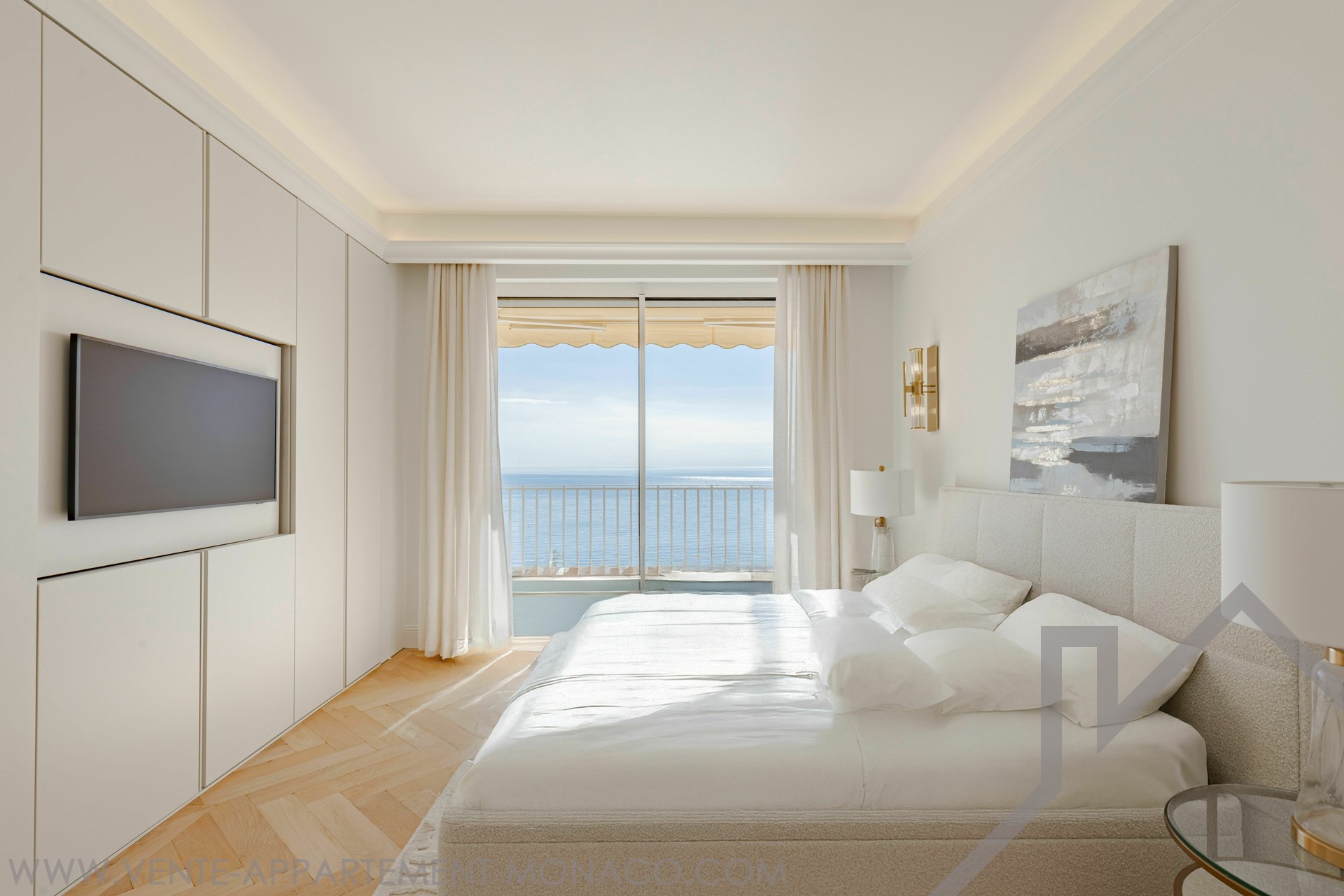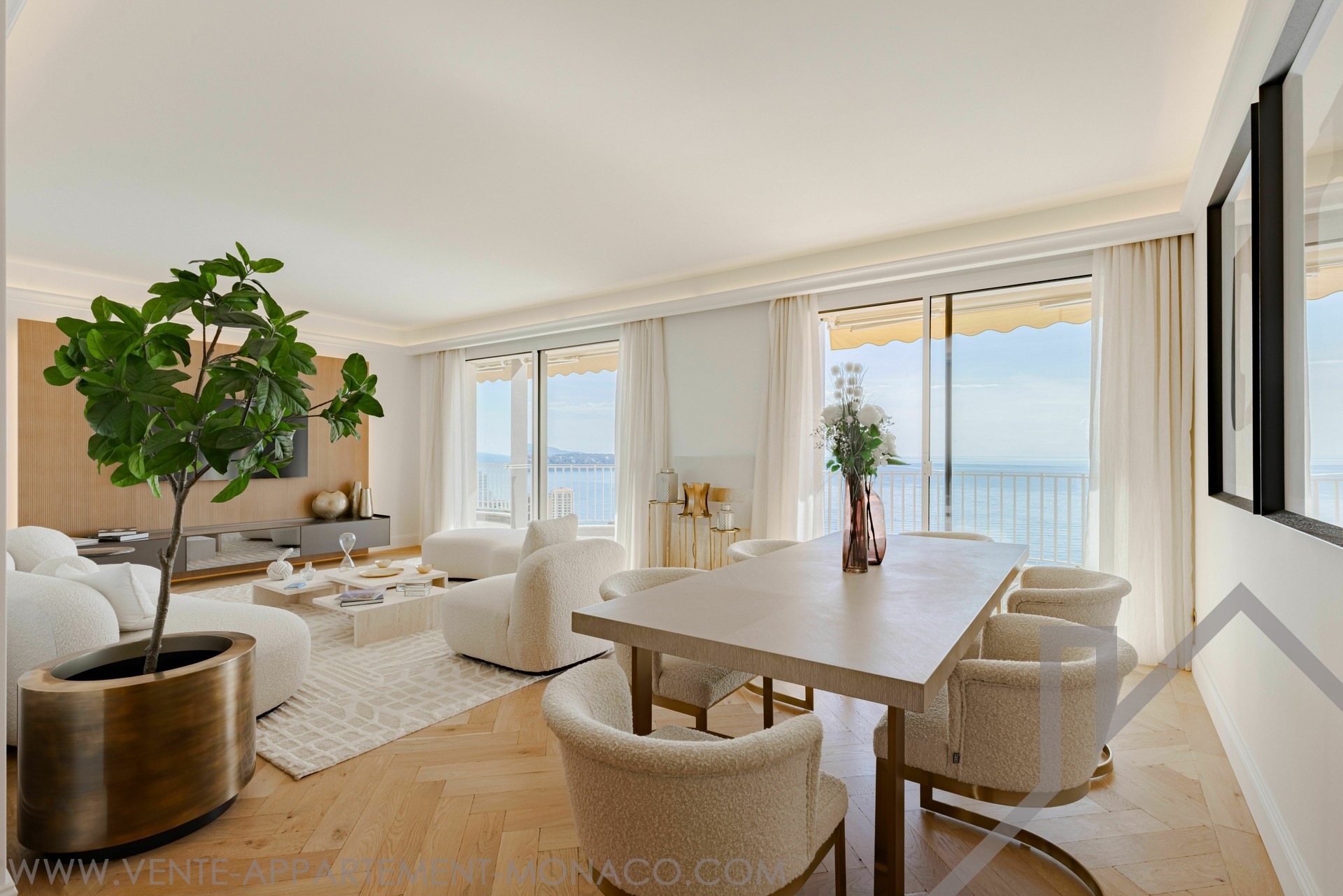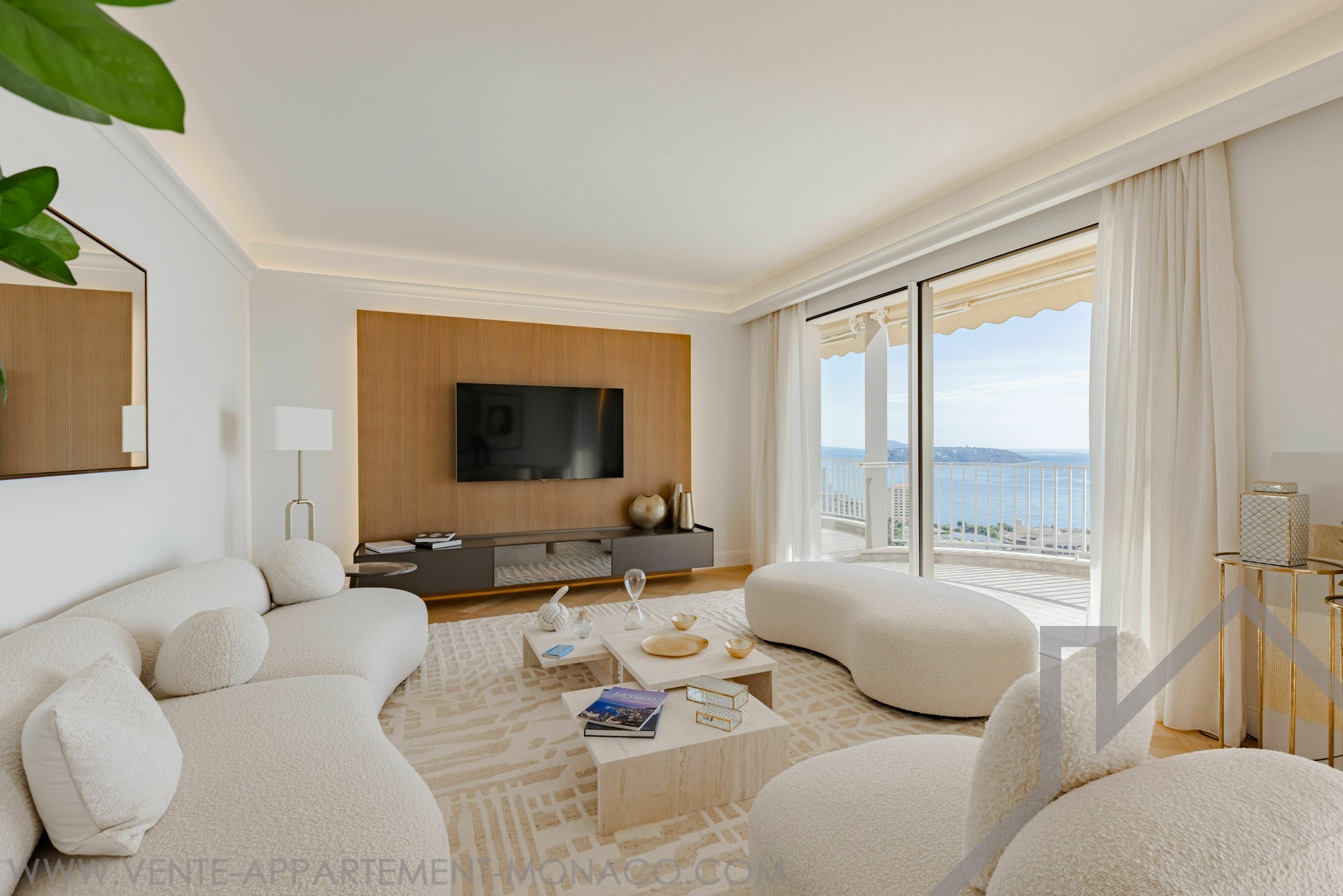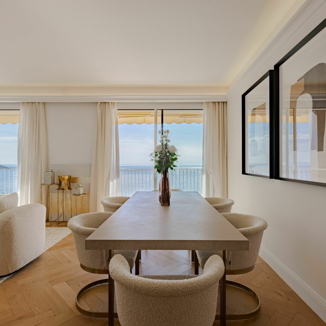 Elegant 2-bedroom apartment, fully renovated with high-end materials, sold furnished. The spacious and bright living room opens onto a terrace with breathtaking views of Monaco and the Mediterranean. Two bedrooms with en-suite bathrooms, a modern kitchen, and luxurious finishes. Ideally located in La Rousse - Saint Roman, close to shops and Larvotto beaches.