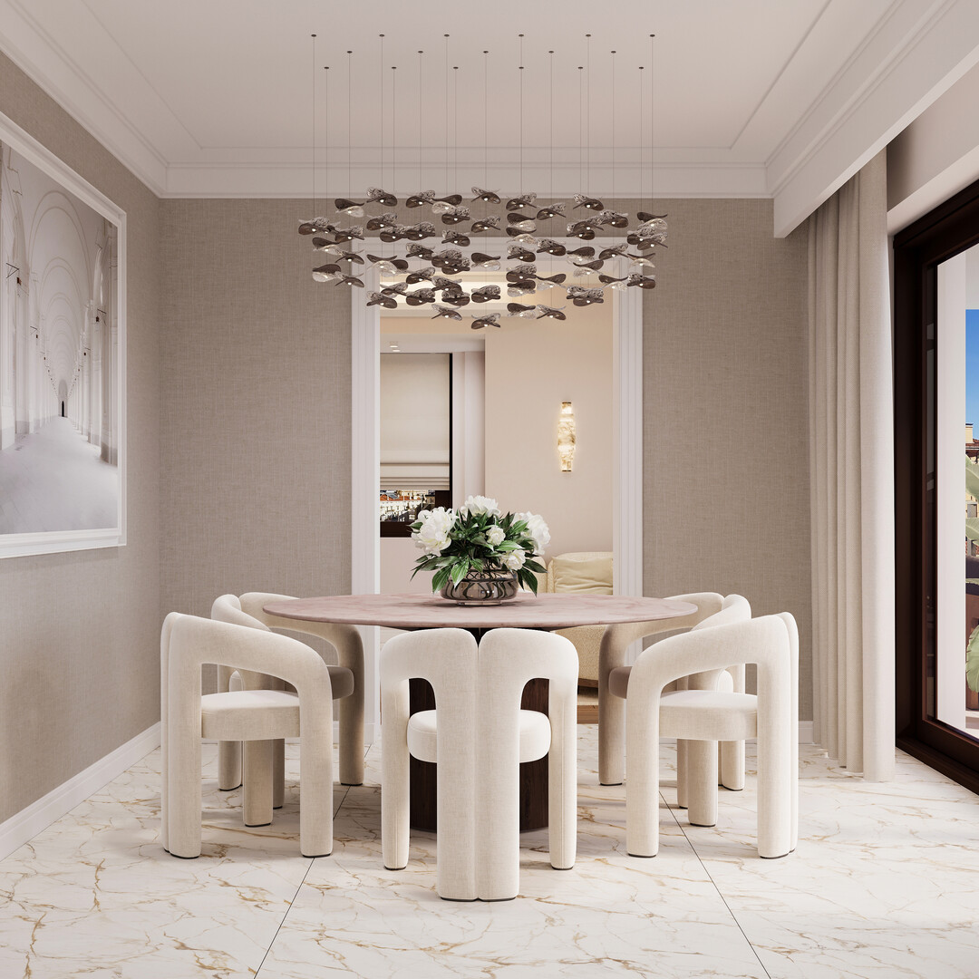 The apartment will be delivered turnkey, with tasteful furnishings and decoration, ready for immediate occupancy.