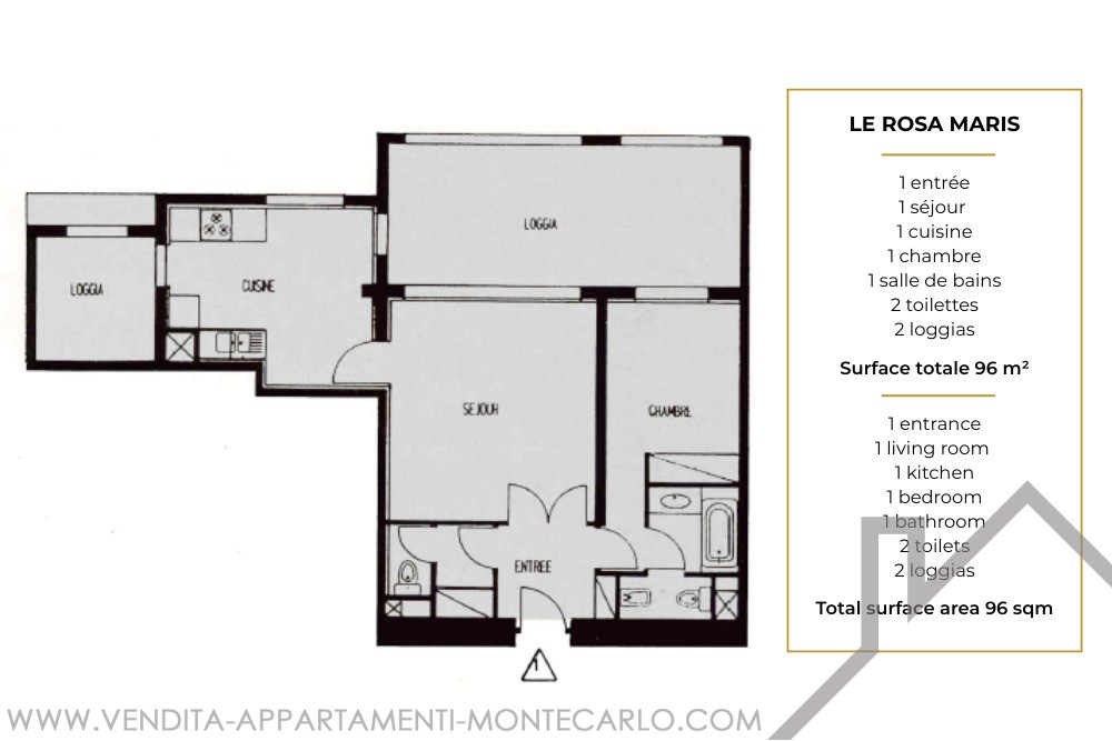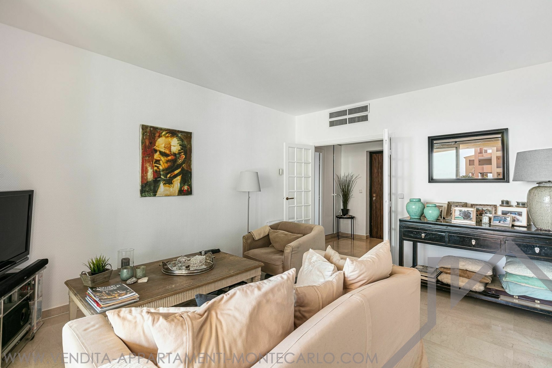 This attractive 2-room + apartment in Monaco's quiet Fontvieille district boasts breathtaking views of the Mediterranean Sea. Nestled on the 5th floor of the luxury LE ROSA MARIS residence, this beautiful property offers a total surface area of 96sqm.