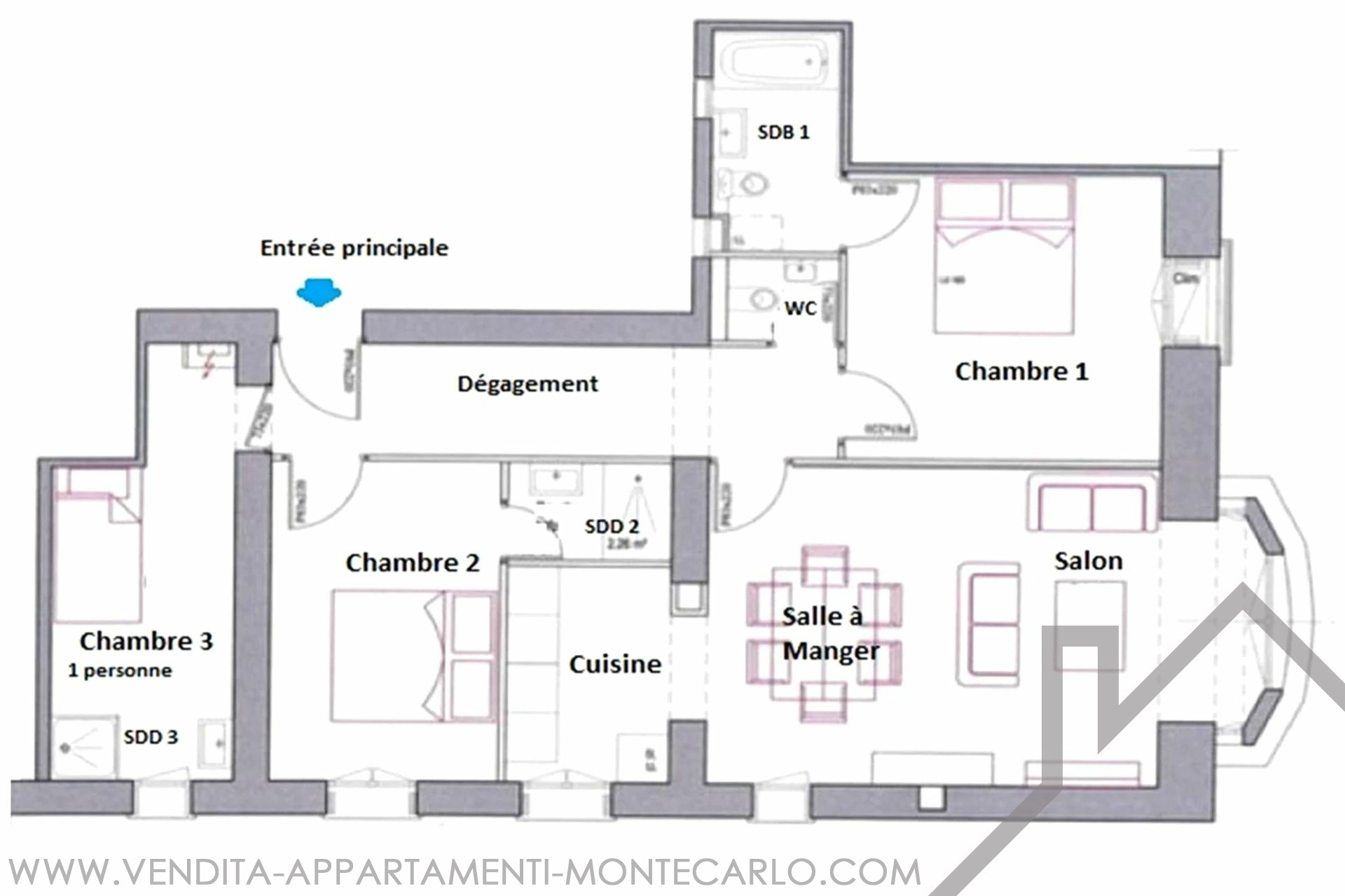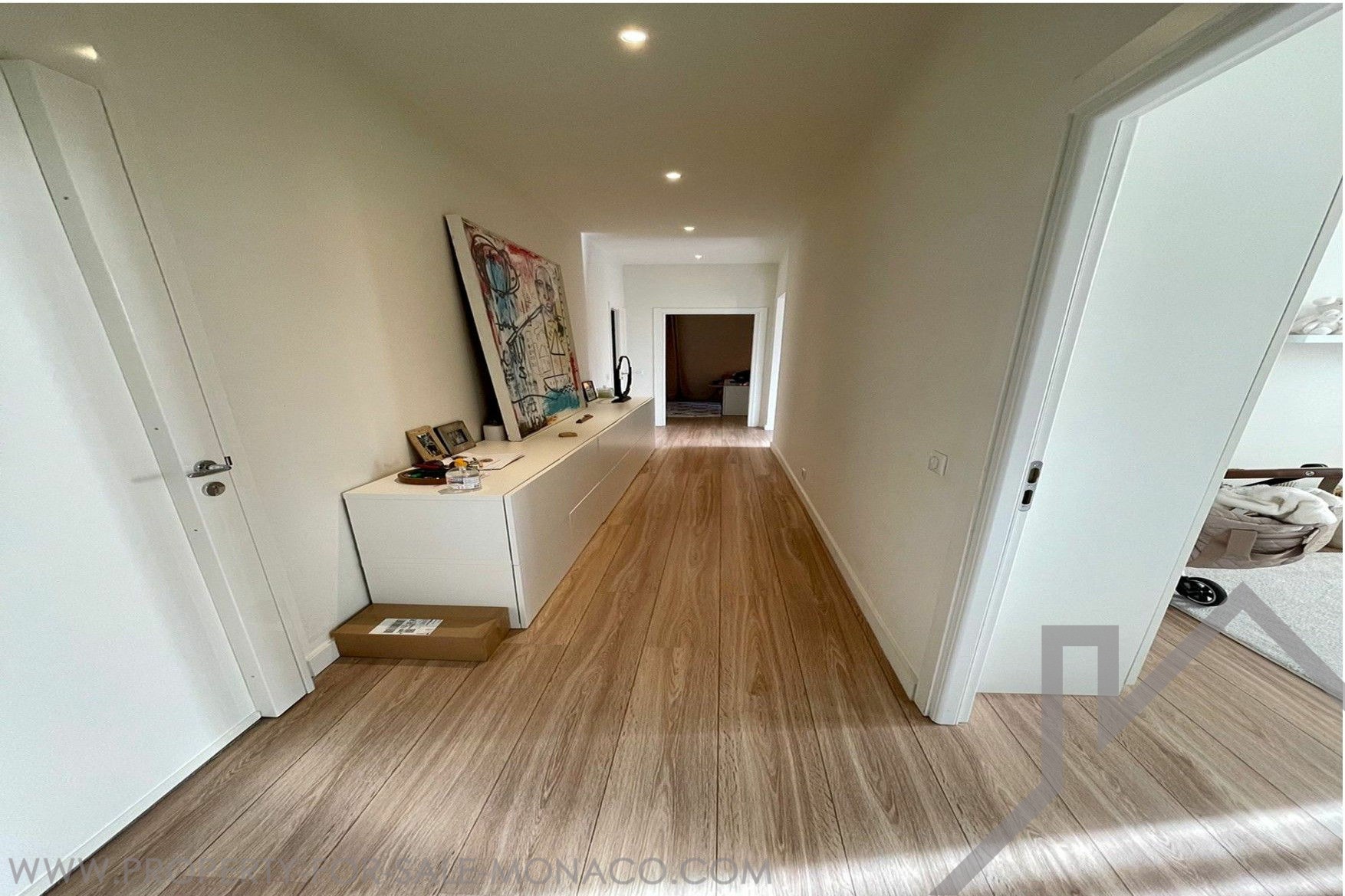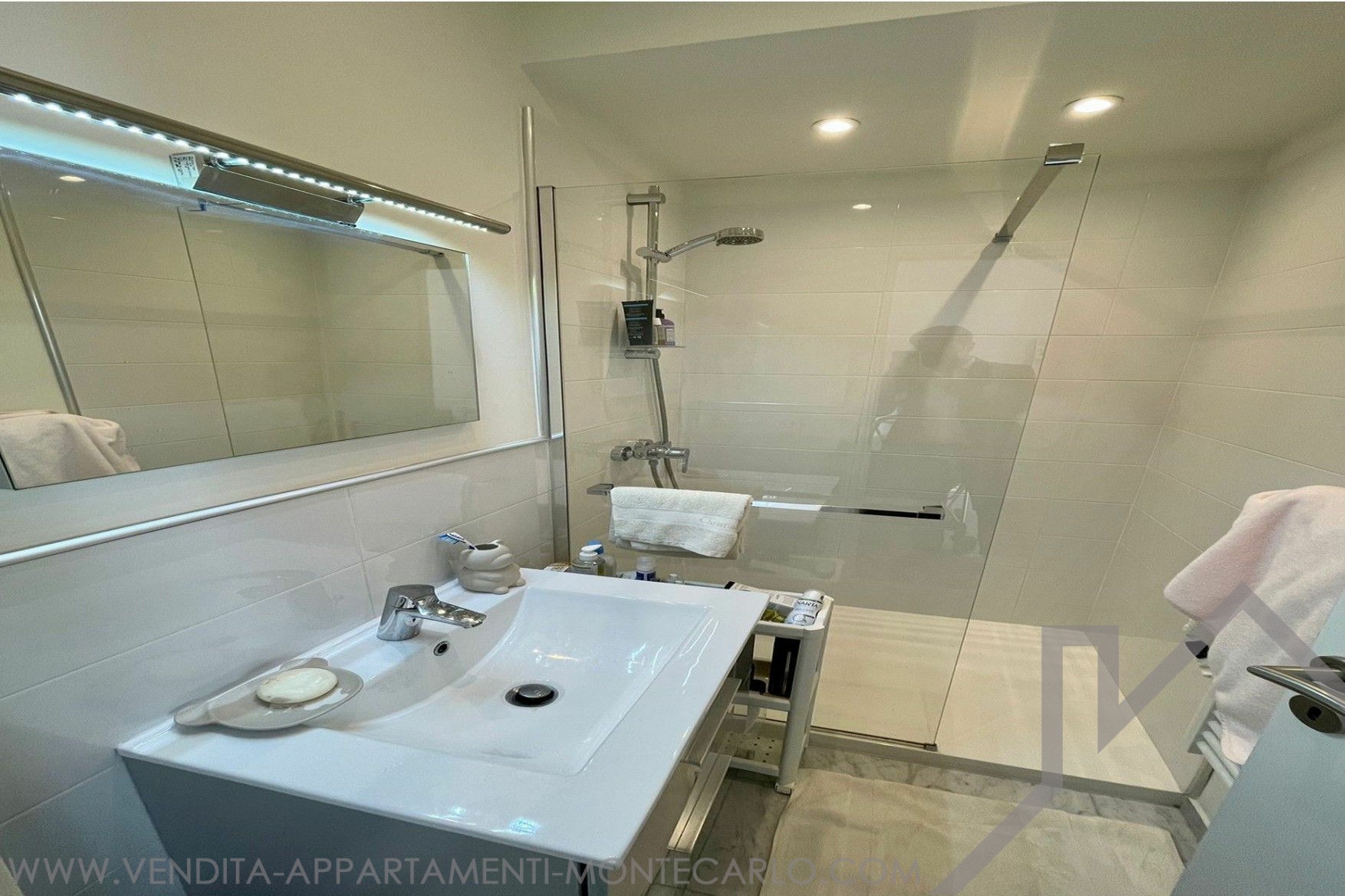 In the Larvotto district, close to the beaches, a fully renovated and bright 4-room apartment with hardwood floors. It features a spacious living room, a fully equipped kitchen, three bedrooms, each with its own private bathroom, and a guest toilet. Air-conditioned. Under law 887. Possibility to purchase a parking space nearby in Villa Bianca on level -1.