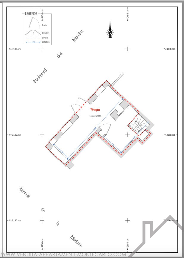 - on the 1st level very nice sales space of 70 sqm  with 16 meters of window