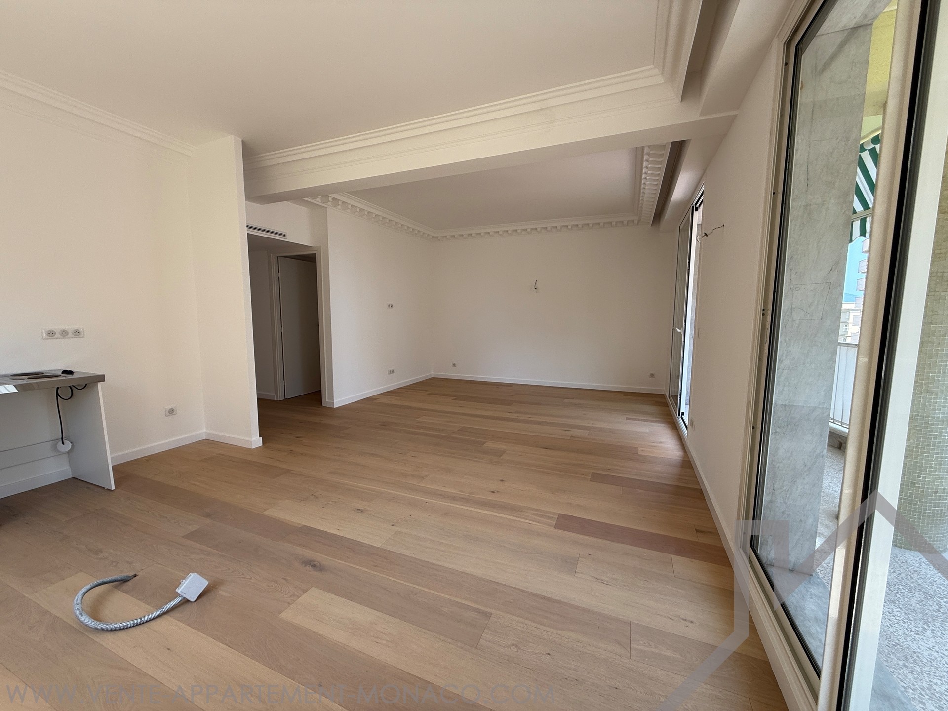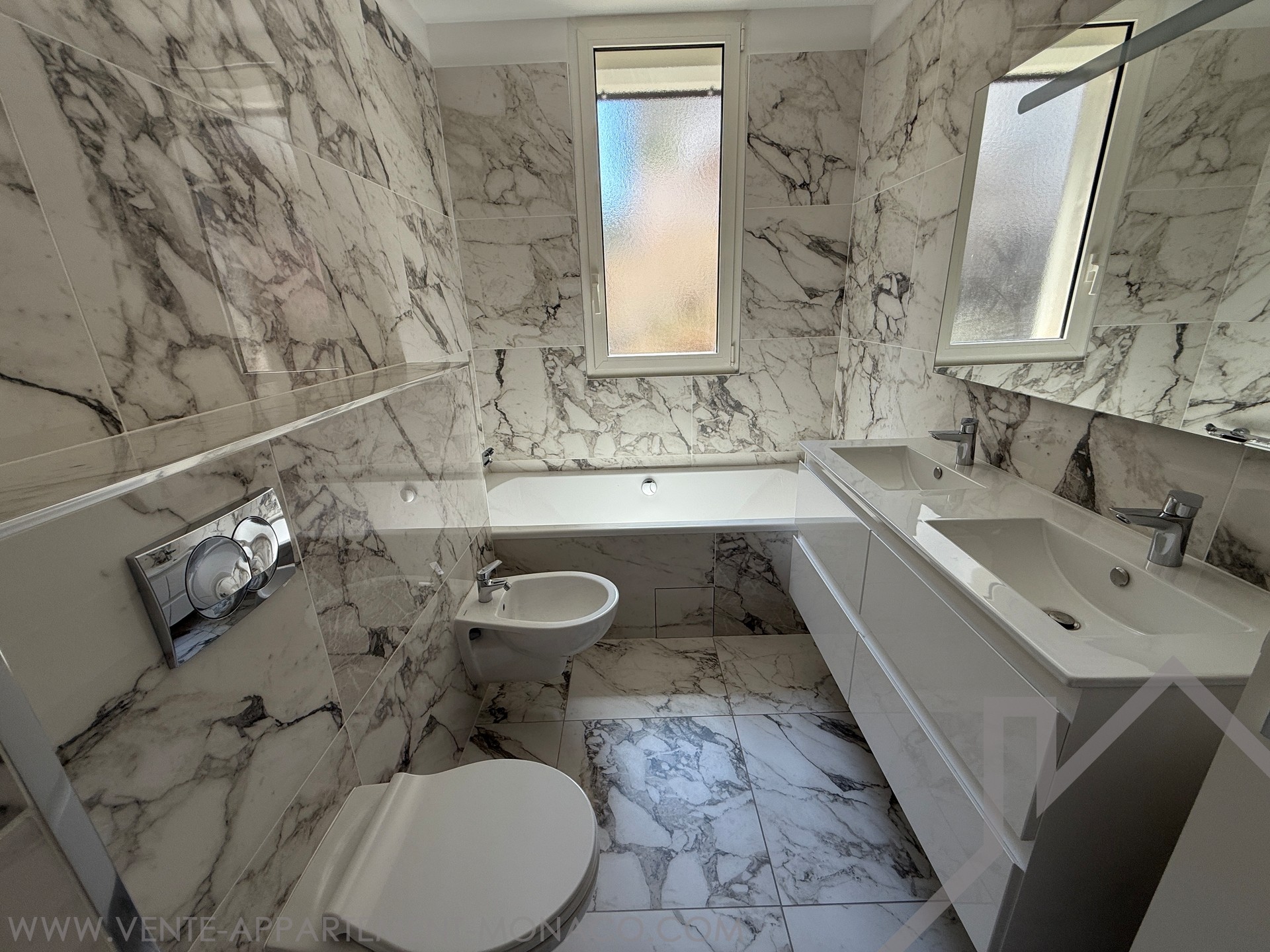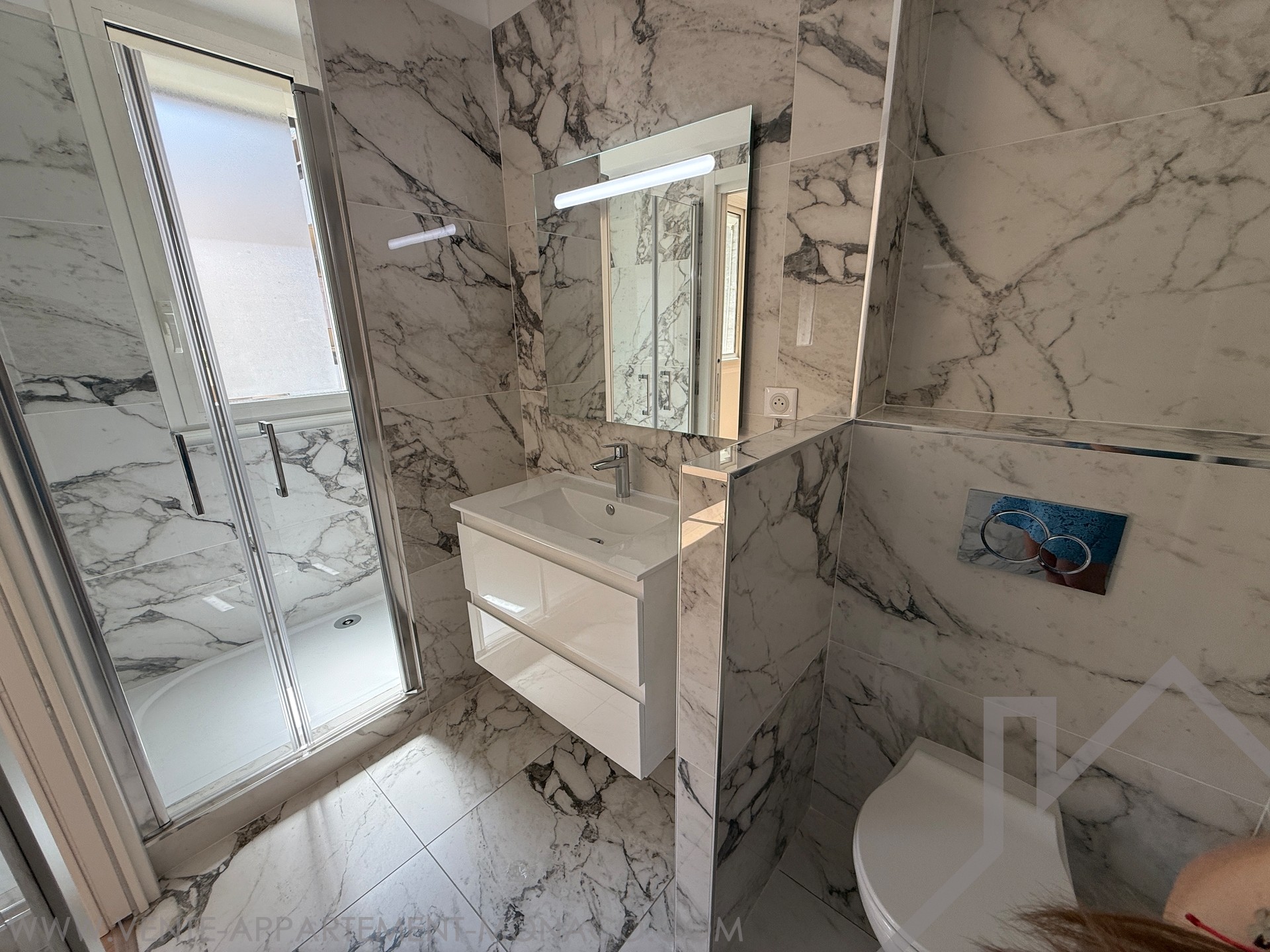 Completely renovated, this 4-room apartment is distinguished by high ceilings and a fluid distribution. The double living room with open fitted kitchen opens onto a balcony, favouring light and conviviality. Three bedrooms, each with its own en-suite bathroom, ensure comfort and privacy on a daily basis. A guest toilet completes the day area. A large terrace, easily convertible as needed, extends the living space. Two cellars provide appreciable storage. The apartment enjoys a partial view of the Rock and the sea.