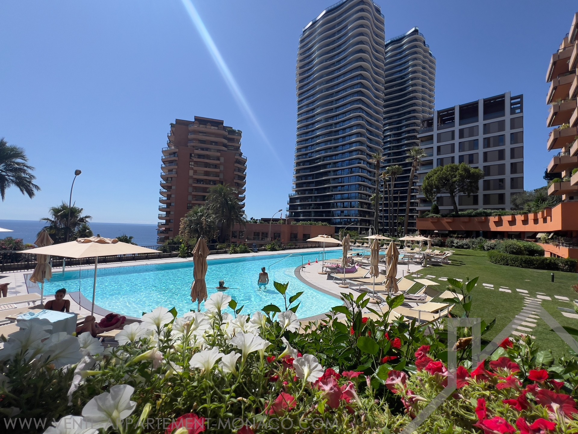 Ideal pied-à-terre, sea view, located near the Country Club, the Monte-Carlo Beach Club and the International School, in one of the most beautiful buildings in the Principality, benefiting from a magnificent park with a fitness area, swimming pool, sauna, 24-hour concierge service, Snack bar open all year round, dog garden. Close to all shops and public transport. Direct access to the Larvotto beaches by lift. It consists of an entrance hall, living room opening onto a terrace with sea and pool views, fully equipped independent kitchen, sleeping area, plenty of storage space, 1 bathroom with water-closet. A parking lot and a cellar