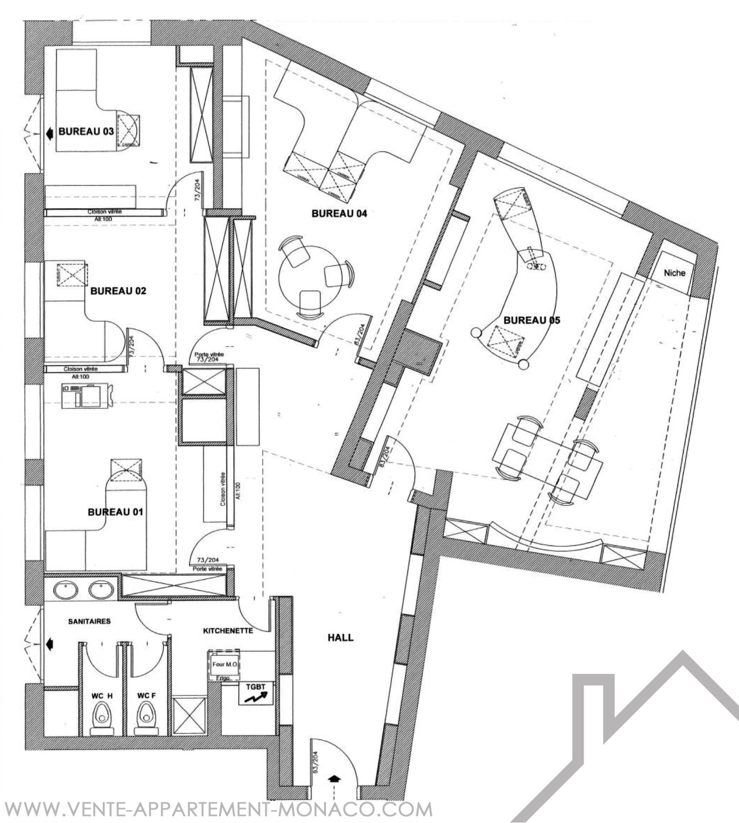 This large, large office is organized into five separate work areas, offering flexible configurations for individual workstations, meetings or receptions. The spaces have been carefully arranged and decorated, with fluid circulation and built-in storage. A kitchenette makes the daily life of the teams easier, while mixed sanitary facilities are available. The sale can include existing furniture (desks, chairs, tables, cabinets, kitchenette), allowing for quick commissioning.