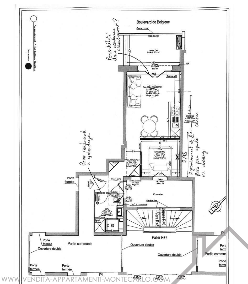 Apartment on the 7th floor of a residence with concierge and elevator in the residential area of Boulevard de Belgique, close to shops and elevators to easily reach the port and the traditional Place d'Armes district. The apartment has been recently renovated and is rented at €4,050/month.   The apartment consists of : entrance hall with large custom-made furniture, living room with open-plan kitchen with washer/dryer and dishwasher, separate bedroom, bathroom with large walk-in shower, covered loggia.