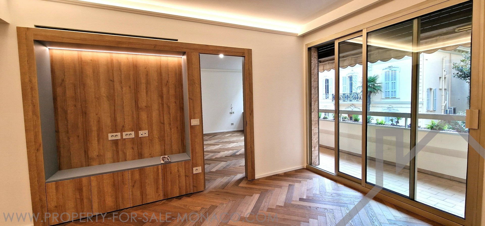 Ideally located in the heart of La Condamine, in the immediate vicinity of all amenities (shops, schools, market, train station, etc.), this luxury 3-room apartment has been completely refurbished with high-end finishes.