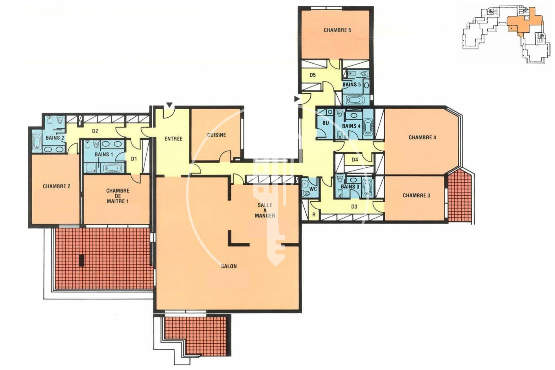 EXCLUSIVE Luxurious 6/7-room apartment with views of the garden and pool, located in the Larvotto district of Monaco. Situated in an elegant building with only 4 floors, this apartment offers a total area of 472 m², including 393.40 m² of living space and a 78.74 m² terrace. It features a large living/dining room that opens onto the terrace, a separate kitchen, five spacious bedrooms, five bathrooms, and a large loggia. A cellar, three parking spaces, and a poolside changing cabin complete this property.