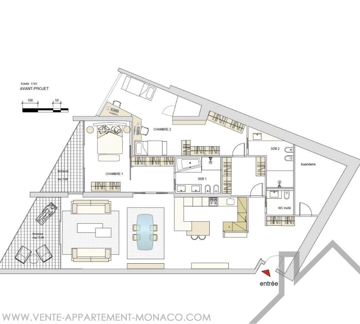Terrace area : 42 sqm