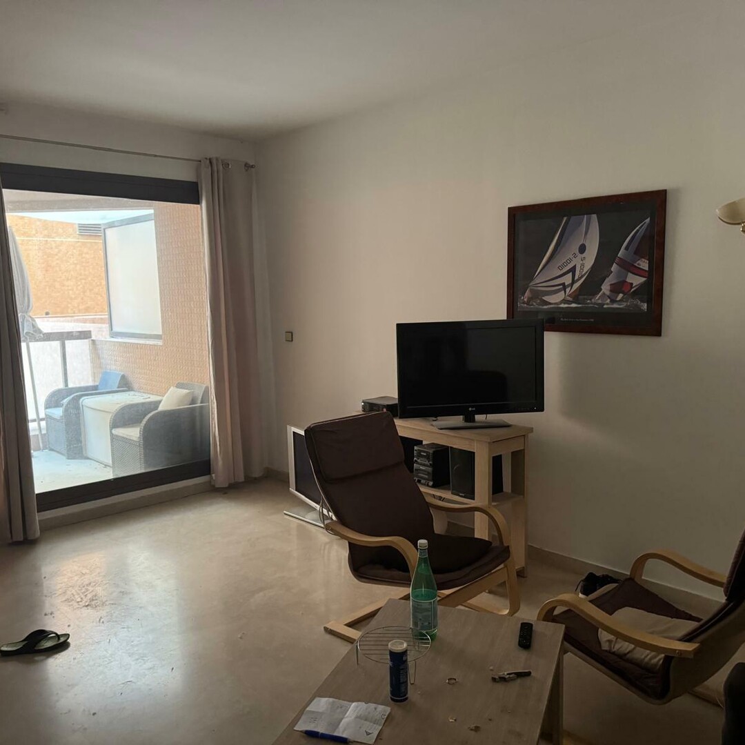 Large studio with entrance and closet, fitted kitchen, main room, bathroom and loggia.