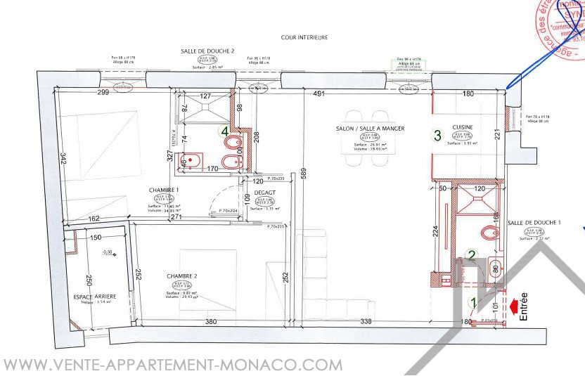CONDAMINE - In a bourgeois building without elevator, fully furnished 3-room apartment on third floor ideally located near the Place d'Armes and the port.
