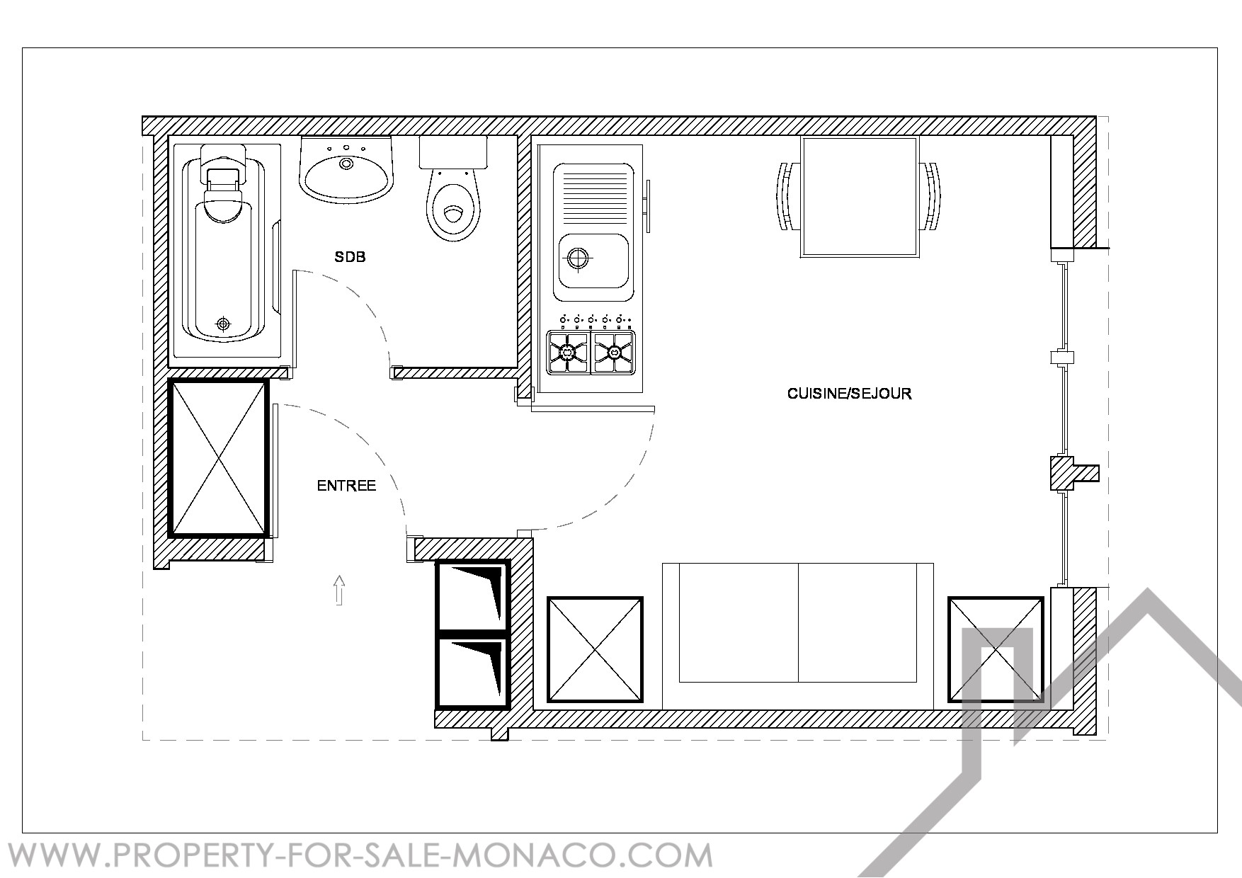 Completely renovated, bright and refined, it is only a few steps from the Place du Casino. This welcoming space consists of an entrance hall, a perfectly arranged main room and an equipped bathroom.