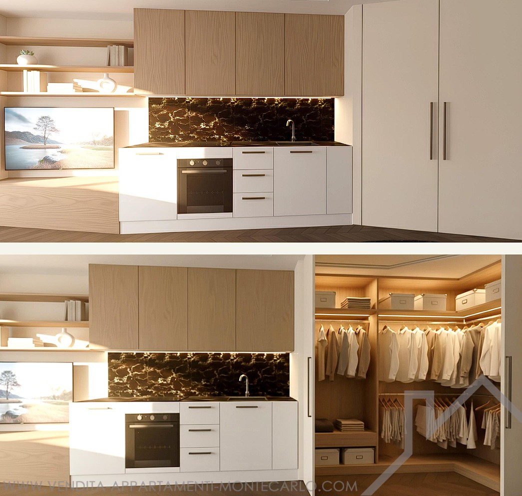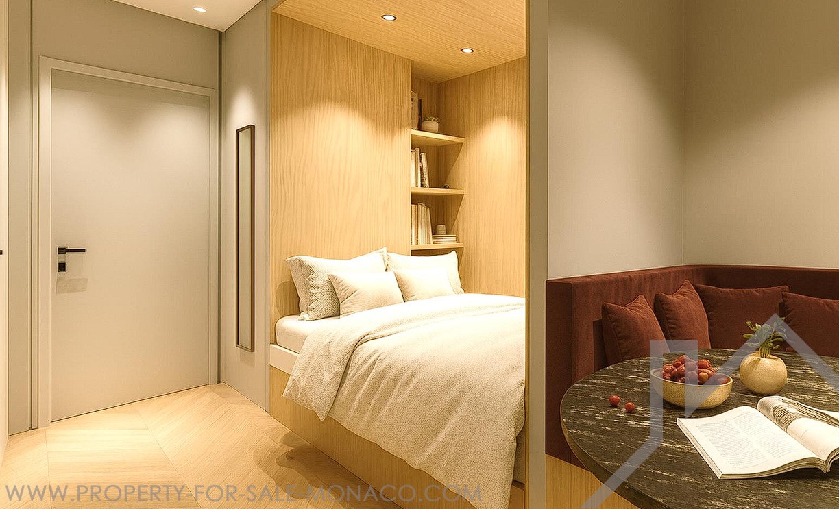 Exceptional studio type apartment with separate alcove on one high floor of a prestigious residence in the heart of Monaco with 24H concierge service and close to all commercial activities (including Carrefour city which is located on the ground floor of the residence). The apartment consists of an entrance hall, kitchen integrated into the living room that opens in front of the generous loggia with a view of the casino and the sea, an alcove in order to preserve an ideal separation between living space and sleeping area, full bathroom. The apartment is currently being renovated and will be delivered turnkey according to the rendering presented here.Possibility of purchasing a large parking space at the price of € 400,000.