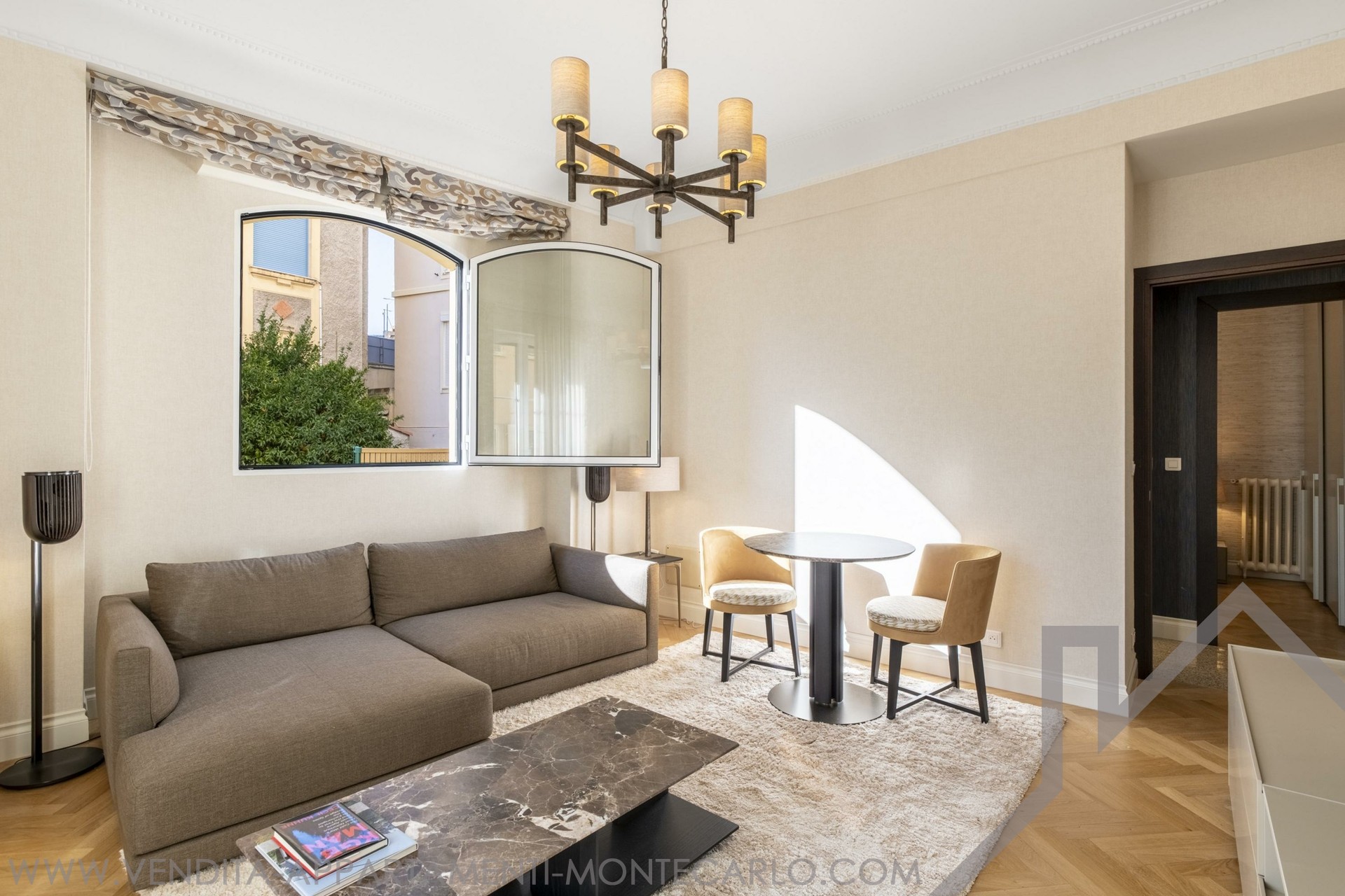 This beautifully renovated 2-bedroom apartment enjoys a central location in the heart of Boulevard des Moulins, close to all amenities, shops and restaurants. Under Law No. 887.