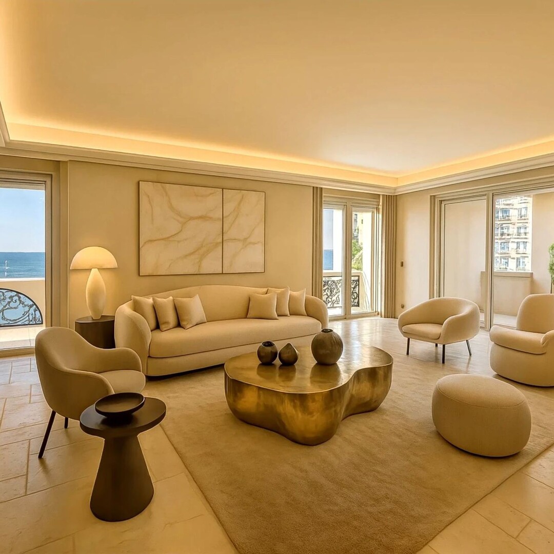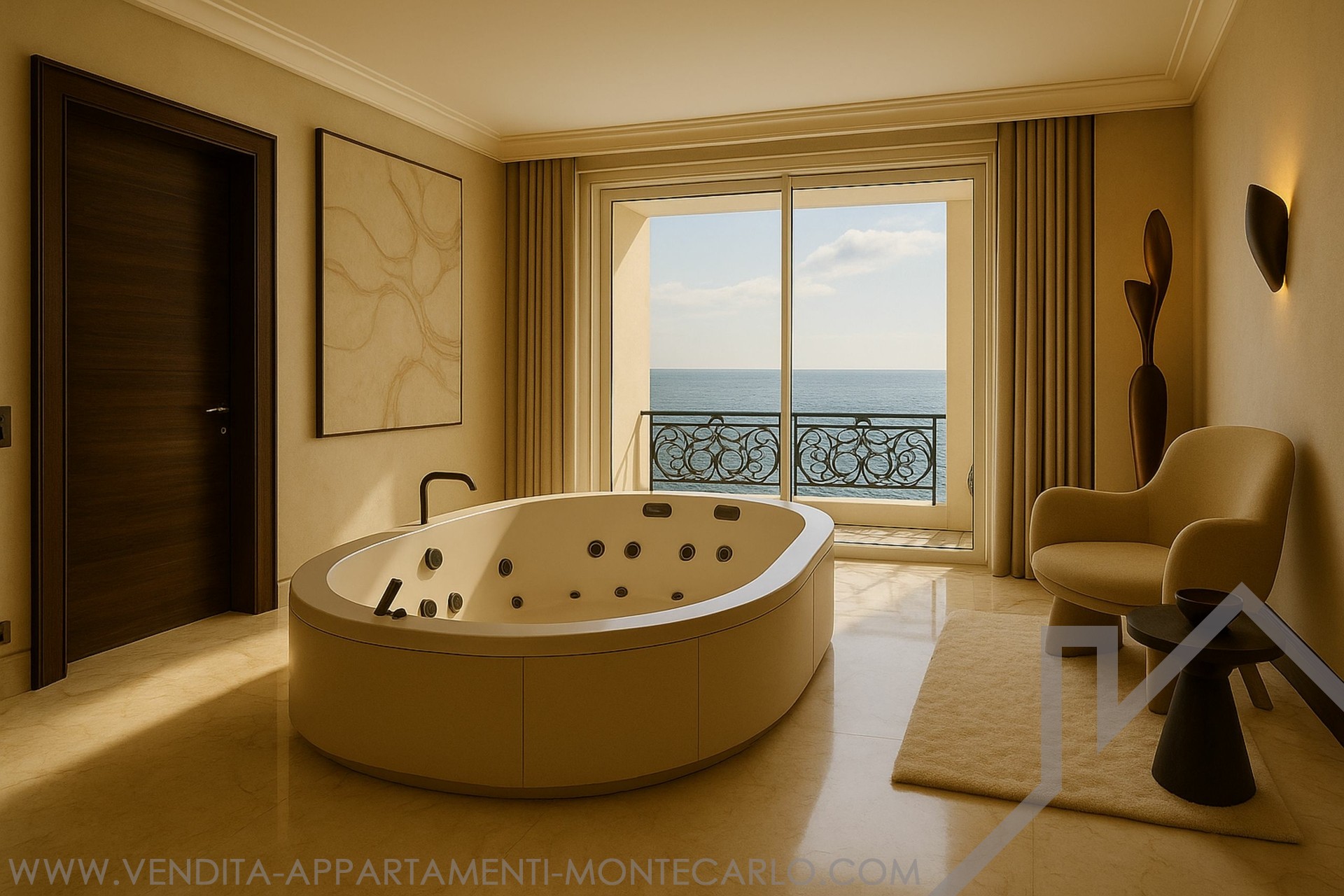 Ideally located just steps from the Fontvieille harbor and the sea, it captivates with its generous spaces.