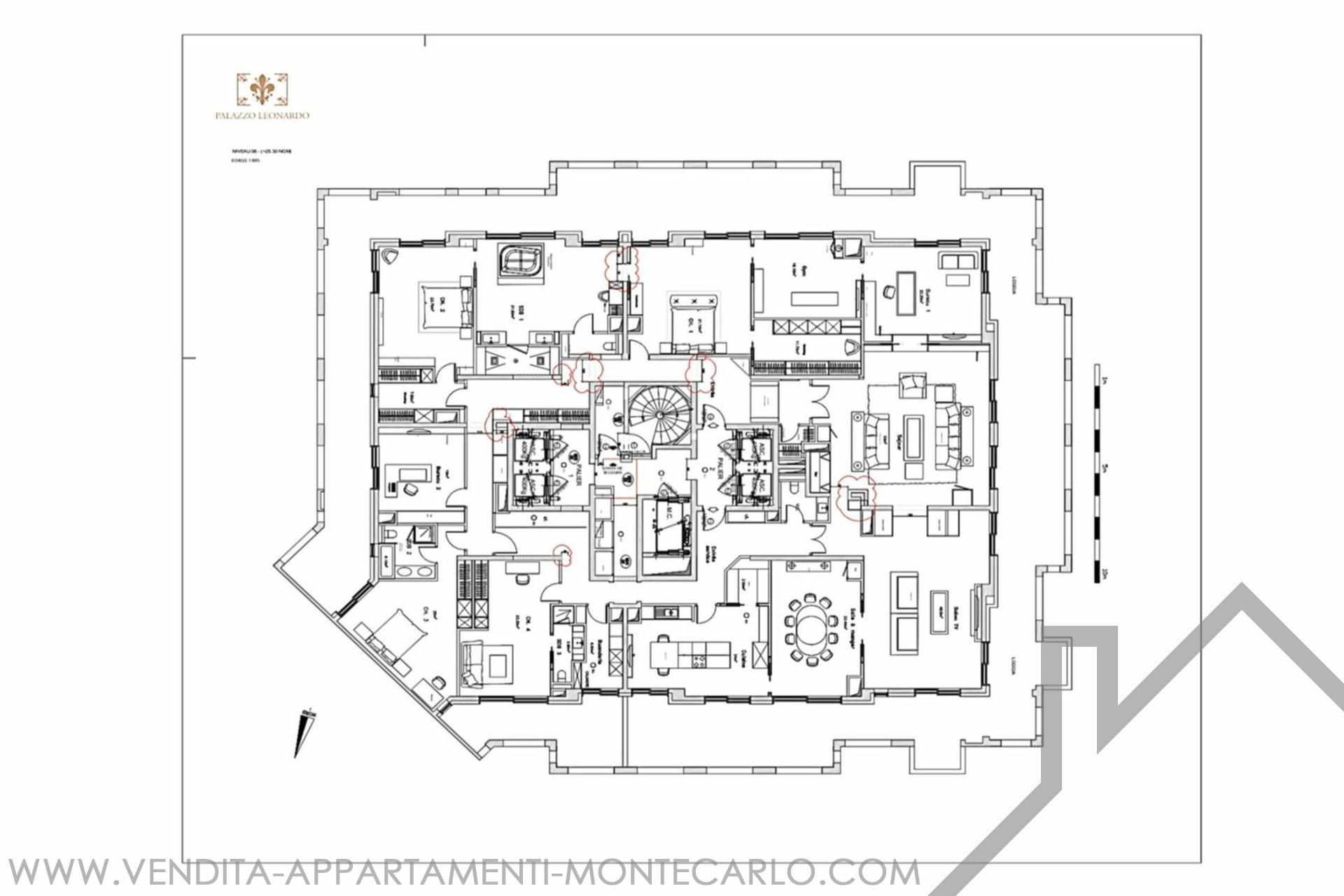 In a prestigious residence, this stunning apartment, in need of renovation, occupies an entire floor of the Palazzo Leonardo and offers a panoramic view of the Mediterranean.