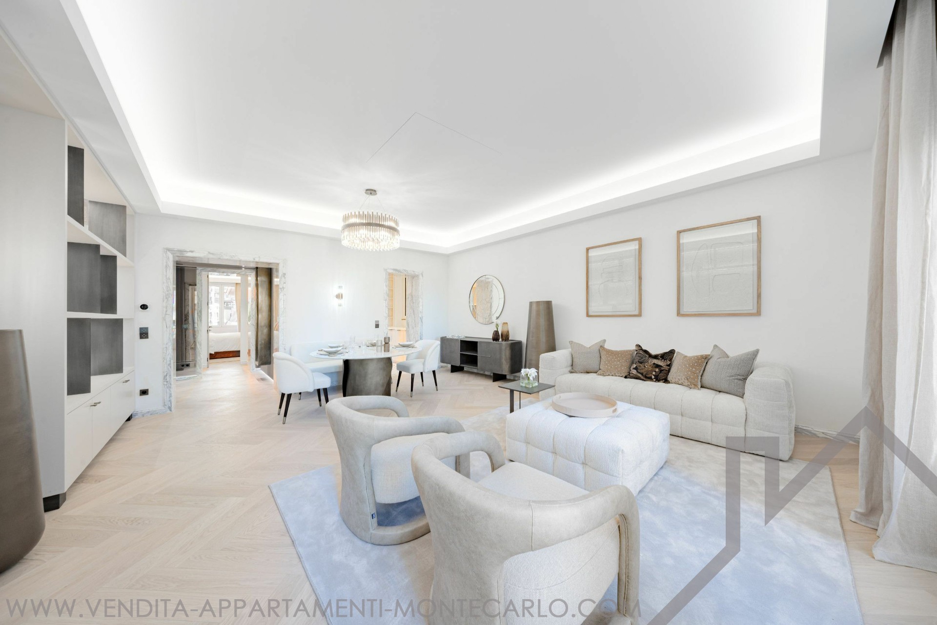 EXCLUSIVE In the heart of the Golden Square, this stunning three-room apartment has been fully renovated with high-end finishes. It consists of two bedrooms, each with its own ensuite shower room, as well as a guest toilet. Additionally, a fully equipped and fitted separate kitchen completes the apartment, along with a bright living/dining room that opens onto a balcony overlooking the Golden Square with a sea view. The apartment also includes a cellar.