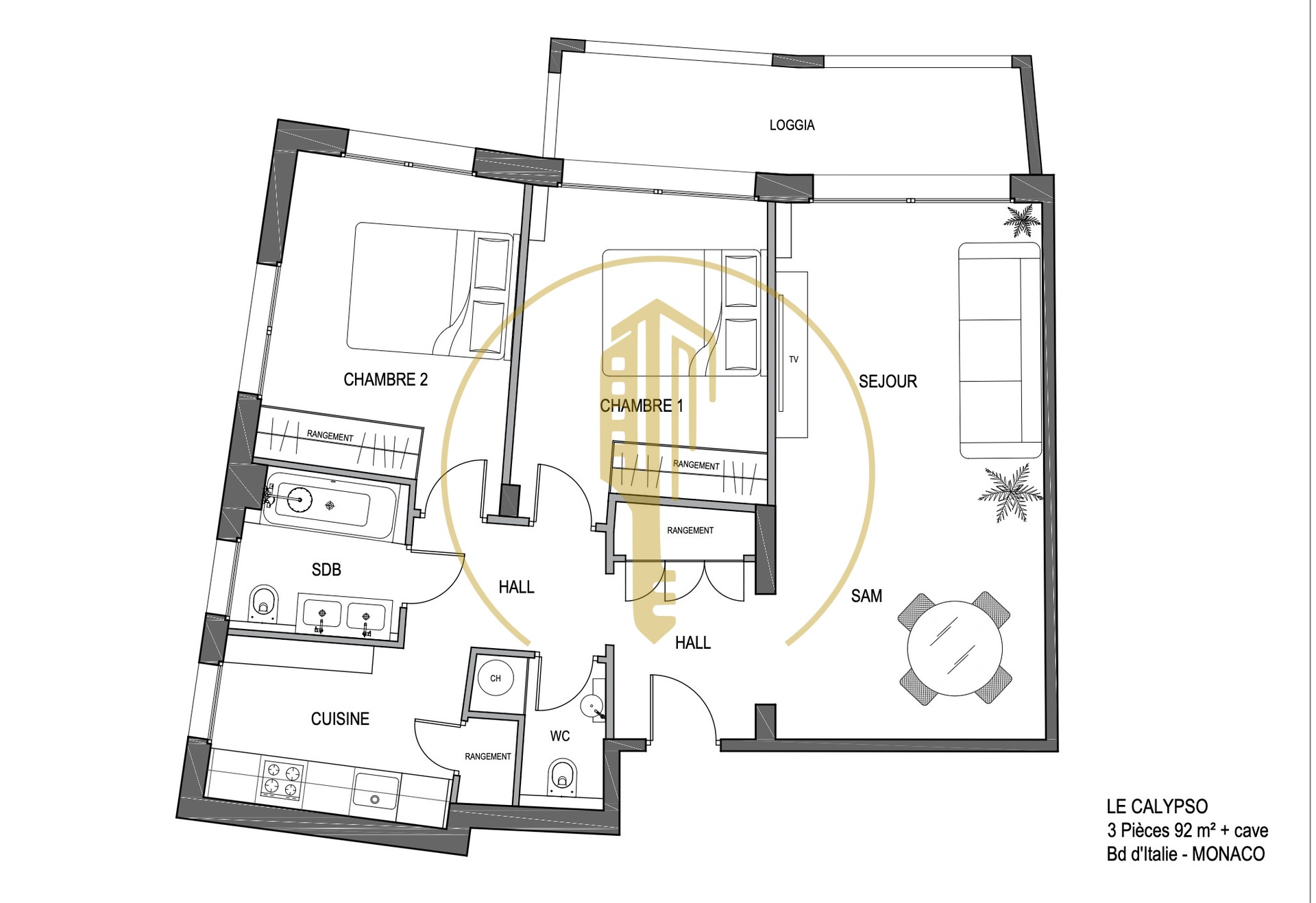 Located in a luxury building with concierge, on the Boulevard d'Italie  , one of the most popular boulevards in the Principality  , this apartment offers very beautiful volumes as well as an independent kitchen.