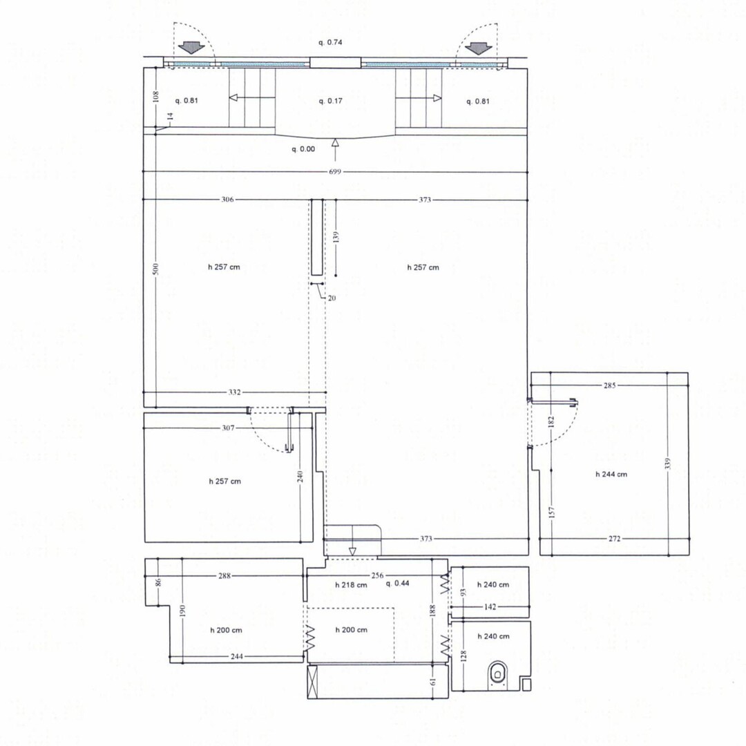 It consists of: a large main room with shop windows, 3 additional rooms, a storage space, 1 toilet and entry doors on 2 sides of the premises.