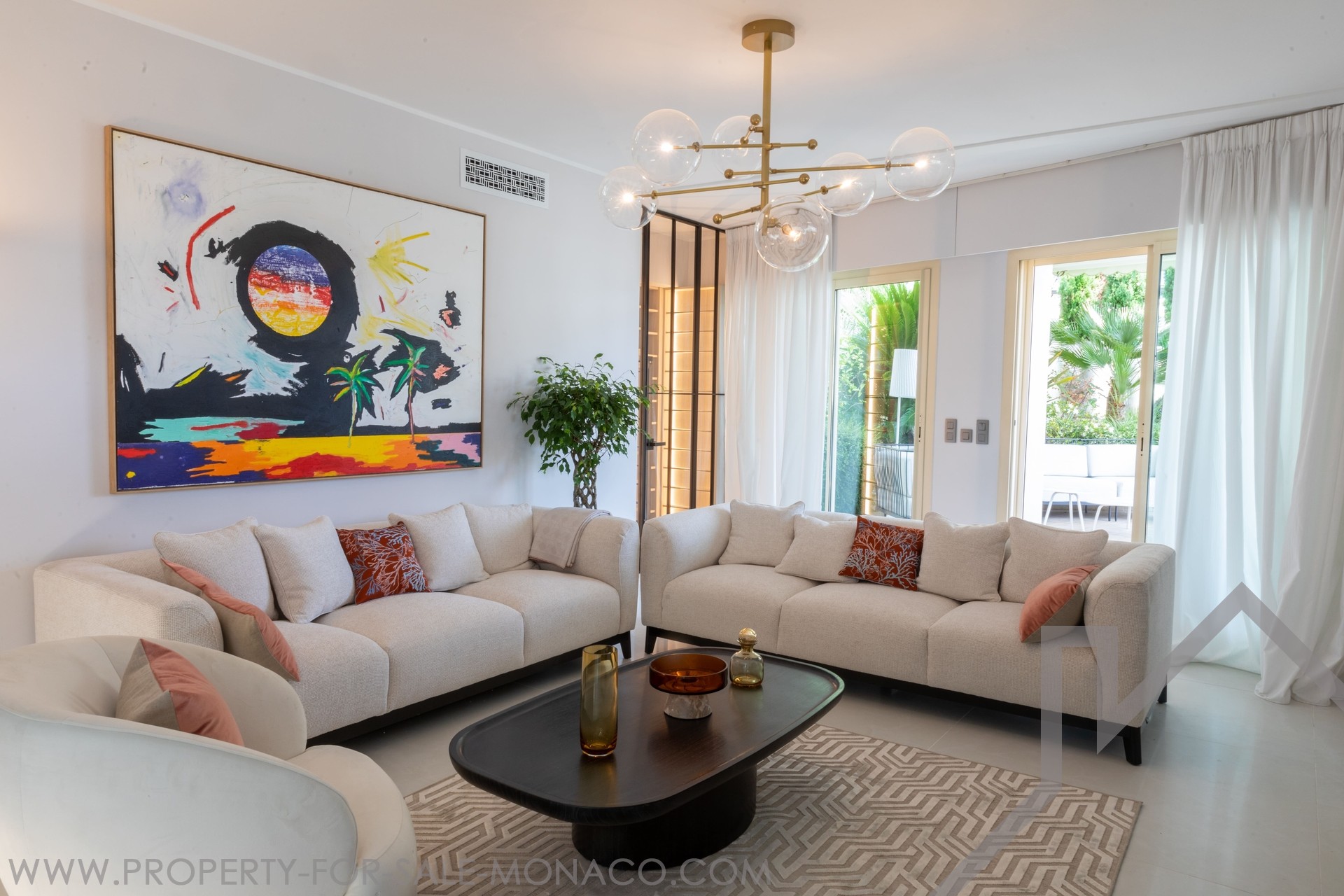 Discover this exceptional 4-room property in Monaco, combining luxury and refinement thanks to its high-end finishes. Enjoy a spacious terrace, a true extension of your living space, equipped with a dining room, an outdoor lounge and a summer kitchen under an elegant pergola. The unique ambience is reminiscent of a villa or penthouse with its own garden. Benefit from two private parking spaces, a separate entrance for the domestic staff, a laundry room and a dressing room. Ideally located just 5 minutes from beaches and shops, with the Embassy of France as a neighbour for optimal tranquility and security. Sold furnished (excluding art paintings).