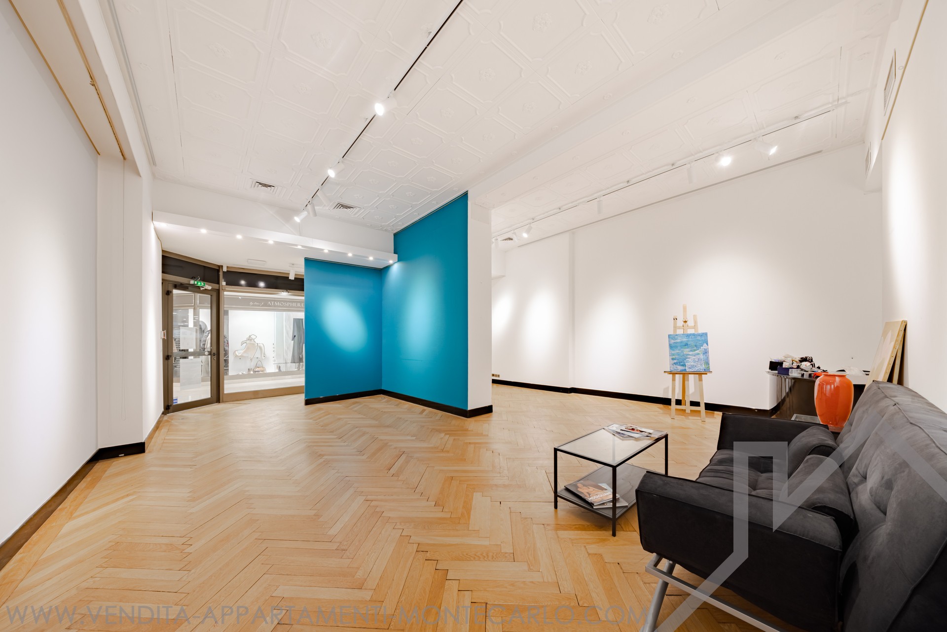 The property offers excellent visibility thanks to a window of about 5 linear meters. Currently fitted out for an art gallery activity, it consists of a large reception and exhibition space, an office, a storage area and a large exhibition room. The volumes are particularly generous and sublimated by a high ceiling.
