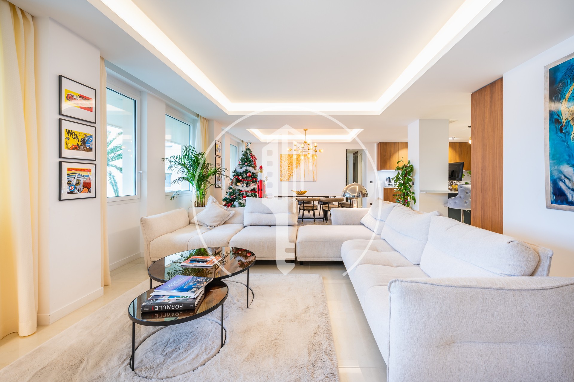 Located on Port Hercule, in a building with concierge, magnificent apartment completely renovated with quality materials, consisting of an entrance hall, guest toilet, living room, dining room, magnificent fully equipped kitchen, laundry room, master bedroom with dressing room and full bathroom, 3 other bedrooms with cupboard, one with full bathroom, shower room, separate toilet, office part composed of a large office with meeting room, 2nd office, Shower room, bathroom, service door, air conditioning.