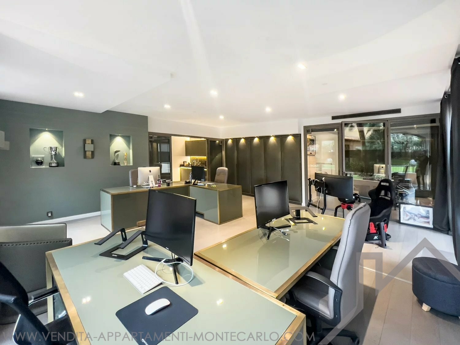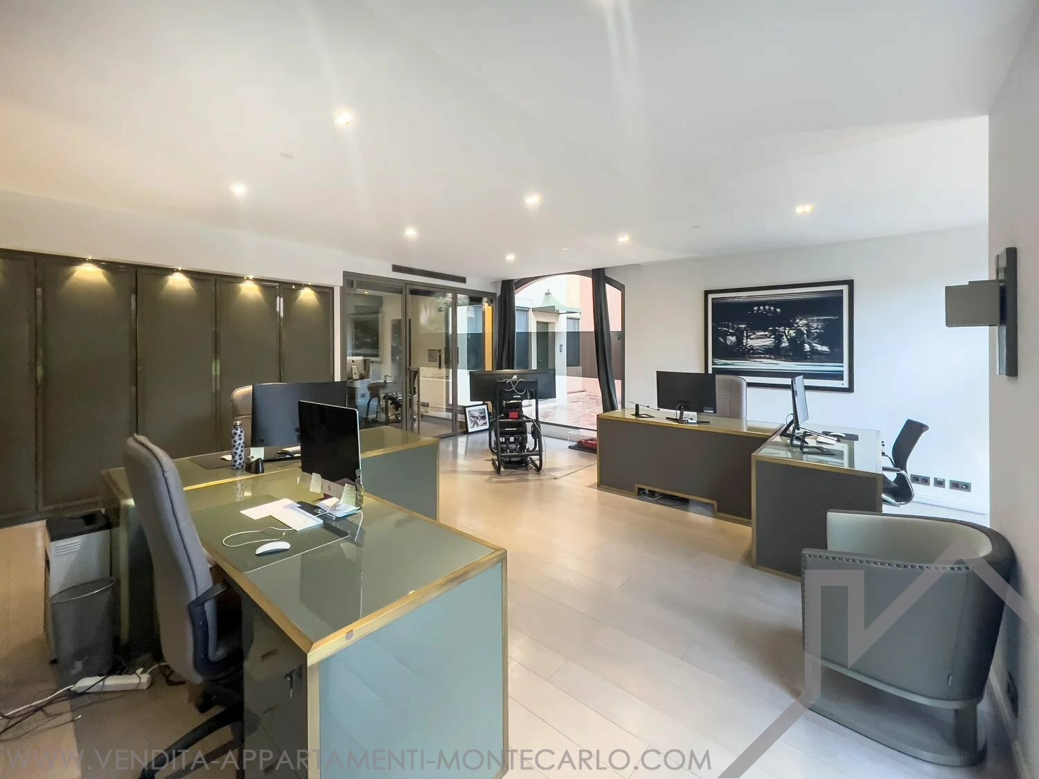 This beautiful office was recently renovated by a renowned interior designer using the finest materials. It is located in a very quiet area in a building opposite the port of Fontvieille, close to excellent restaurants and cafés.