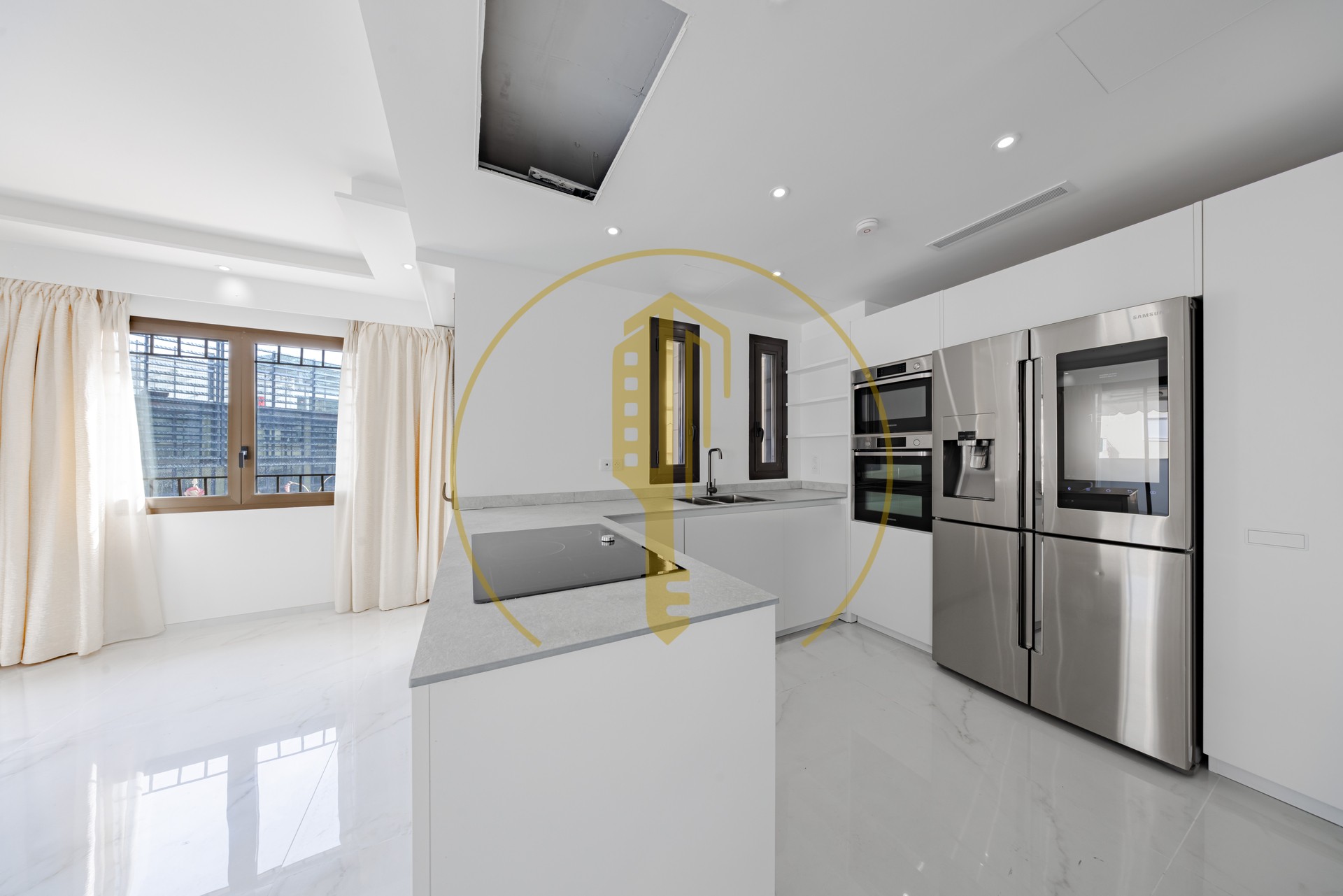 Large renovated 4-room apartment, consisting of a large entrance, large double living room, equipped American kitchen, 3 bedrooms, 3 bathrooms.