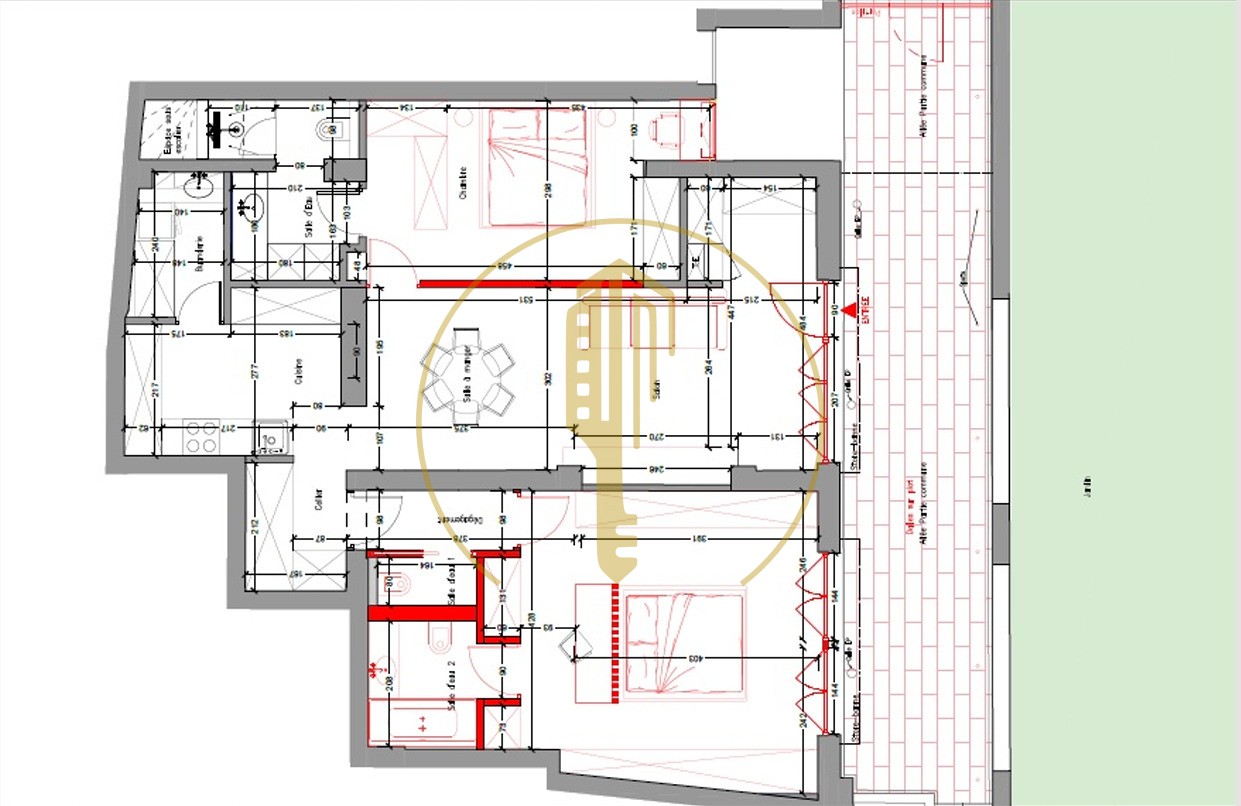 CARRE d'OR - In a residence with concierge service, this apartment of approximately 190 m2, completely renovated, consists of an entrance, a living room, a kitchen, two master bedrooms with bathroom, a dressing room and a guest toilet. The living room and bedrooms open onto a large terrace out of sight.