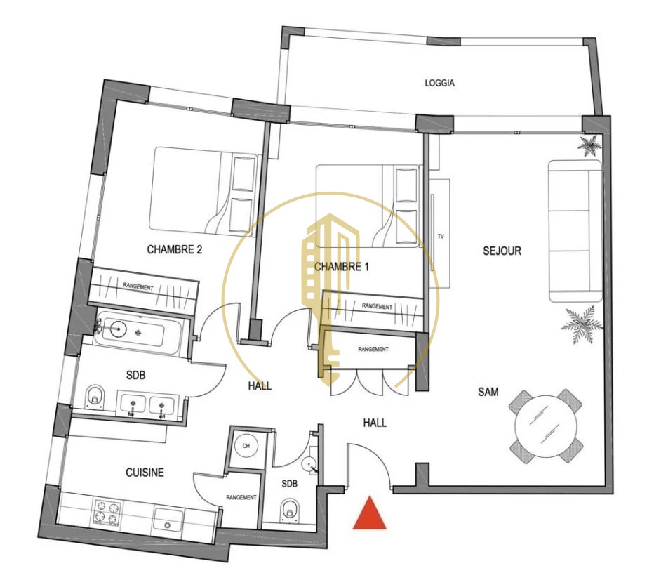 Offering beautiful volumes and excellent development potential, this three-room apartment is a rare opportunity on the market. It consists of an entrance hall, a bright living room opening onto a loggia, two bedrooms, a fitted kitchen, a bathroom, separate toilets and plenty of storage space. All rooms benefit from a window, guaranteeing natural light throughout the day.