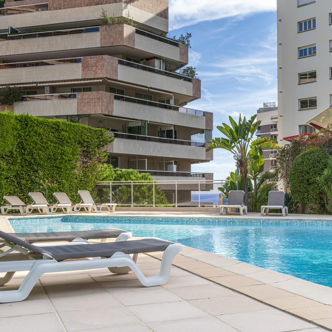 Large parking space at Patio Palace, a prestigious building in the Jardin Exotique district.